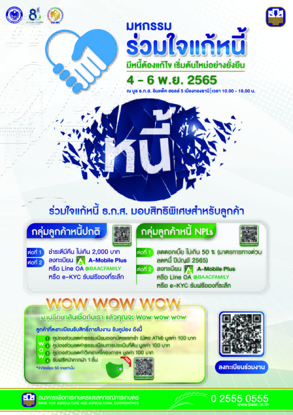 ธ.ก.ส. ร่วมกับ กอช. จัดกิจกรรม “วันออมแห่งชาติและวันครบรอบสถาปนาธนาคาร” เยาวชน และประชาชนทั่วไปที่เข้าร่วมกิจกรรมส่งเสริมการออมรับของที่ระลึกสุดพิเศษจาก ธ.ก.ส. และ กอช. ในระหว่างวันที่ 31 ตุลาคม ถึง 30 พฤศจิกายน 2565 ณ หน่วยรับสมัครสมาชิก กอช. และ ธ.ก.ส. ทุกสาขาทั่วประเทศ