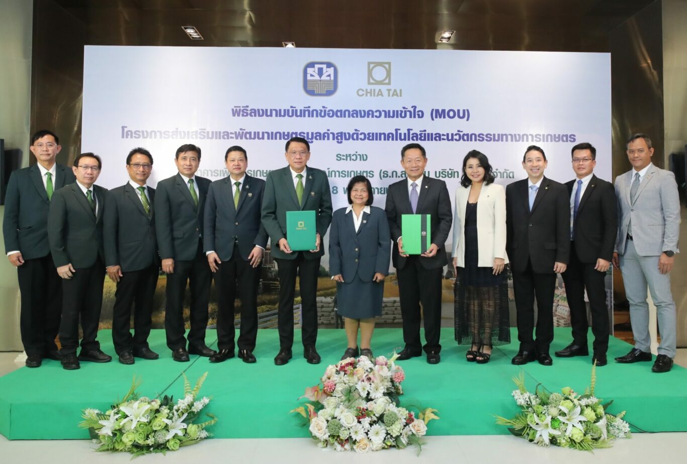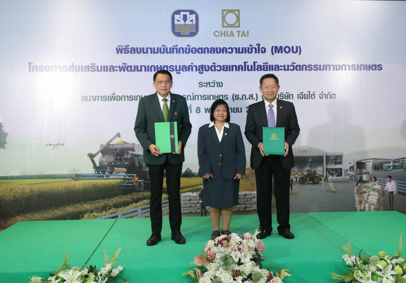 วันนี้ (8 พฤศจิกายน 2565) นายธนารัตน์ งามวลัยรัตน์ ผู้จัดการธนาคารเพื่อการเกษตรและสหกรณ์การเกษตร (ธ.ก.ส.) และนายมนัส เจียรวนนท์ ประธานคณะผู้บริหาร บริษัท เจียไต๋ จำกัด ร่วมลงนามบันทึกข้อตกลง “โครงการส่งเสริมและพัฒนาเกษตรมูลค่าสูง” เพื่อสนับสนุนการนำเทคโนโลยีและนวัตกรรมมาปรับใช้ในภาคเกษตรกรรม การเติมองค์ความรู้ในการวางแผนการผลิตที่สามารถสร้างกำไร พร้อมสนับสนุนสินเชื่ออัตราดอกเบี้ยต่ำให้เกษตรกรและผู้ประกอบการเกษตร เพื่อเพิ่มมูลค่าผลผลิตและเสริมศักยภาพการแข่งขันเกษตรไทยไปสู่ตลาดโลก ณ ห้องโถง ชั้น 2 อาคารทาวเวอร์ ธนาคารเพื่อการเกษตรและสหกรณ์การเกษตร สำนักงานใหญ่ กรุงเทพฯ