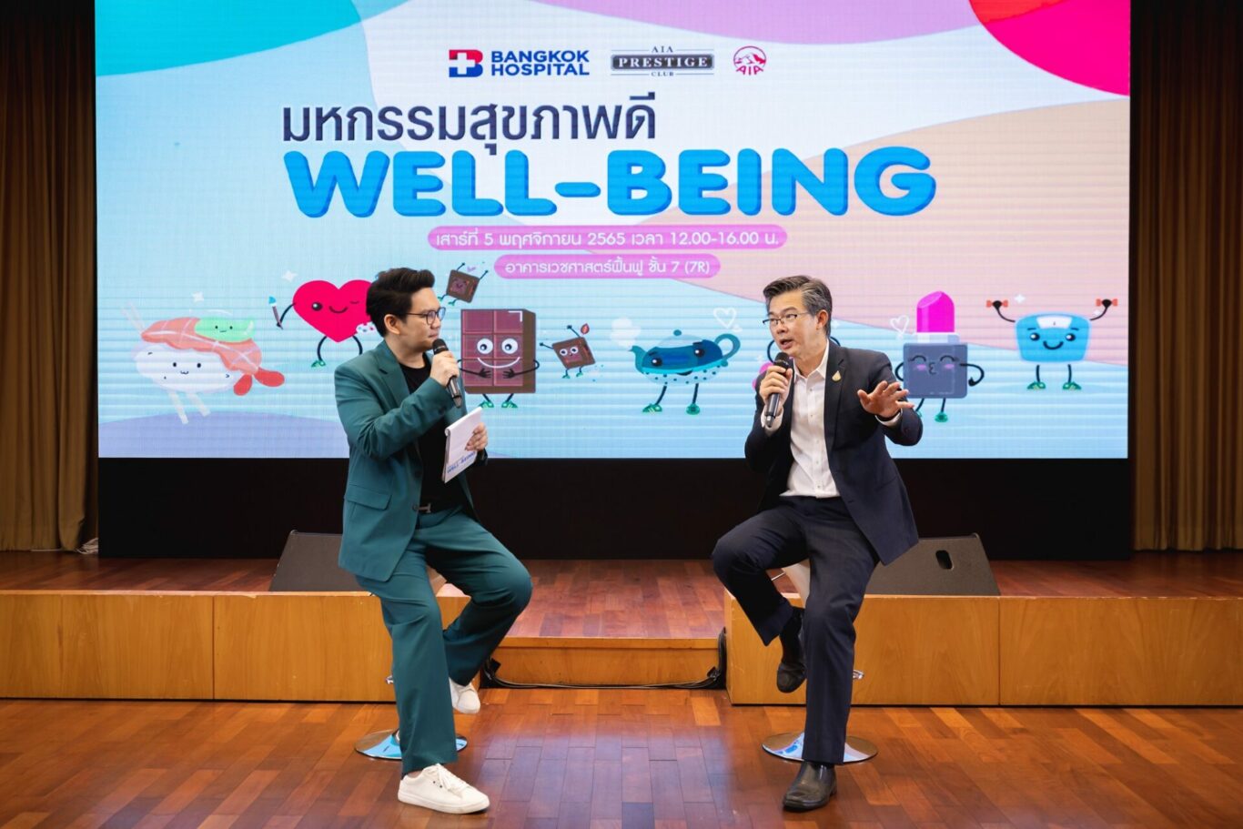 เอไอเอ ประเทศไทย ร่วมกับ ศูนย์จิตรักษ์ โรงพยาบาลกรุงเทพ สำนักงานใหญ่ จัดกิจกรรมสุดเอ็กซ์คลูซีฟ “Well-Being มหกรรมสุขภาพดี 2565” พร้อมเชิญสมาชิกเอไอเอ เพรสทีจ คลับ (AIA Prestige Club) กว่า 200 ท่านเข้าร่วมกิจกรรม เพื่อมุ่งสร้างแรงบันดาลใจให้ทุกคนหันมาใส่ใจสุขภาพทั้งร่างกาย สมอง อารมณ์และจิตใจ ซึ่งเป็นพื้นฐานสำคัญต่อการมีสุขภาพและชีวิตที่ดีขึ้นอย่างยั่งยืน โดยได้รับเกียรติจากแพทย์ผู้เชี่ยวชาญทั้งจิตแพทย์ผู้ชำนาญการ และนักจิตวิทยา มาร่วมพูดคุยและแบ่งปันเคล็ดลับการดูแลสุขภาพ เพื่อส่งเสริมทั้งด้านสุขภาพกายและสุขภาพใจให้แข็งแรง ตอกย้ำคำมั่นสัญญาของเอไอเอ ‘Healthier, Longer, Better Lives – เพื่อสุขภาพและชีวิตที่ดีขึ้น’