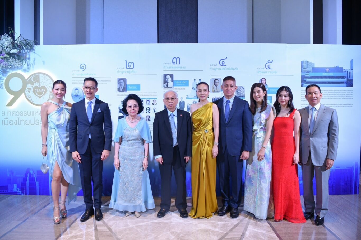 ภายในงาน “9 ทศวรรษแห่งรอยยิ้ม” เมืองไทยประกันภัย ได้จัดนิทรรศการเรื่องราวประวัติศาสตร์การเดินทาง 90 ปี กับ 5 ก้าวสำคัญของ ผ่านเรื่องราวและการบริหารงานของทายาทตระกูลล่ำซำทั้ง 5 รุ่นจนถึงปัจจุบัน ดังนี้ ก้าวแรกสู่แผ่นดินสยาม โดย ‘นายอึ้งเมี่ยวเหงี่ยน’ บรรพบุรุษรุ่น 1 ของ ‘ตระกูลล่ำซำ’ ที่เข้ามาปักหลักในแผ่นดินสยาม ทำการค้าไม้ และสร้างสาธารณประโยชน์อย่าง โรงพยาบาลเทียนฟ้ามูลนิธิ ดูแลคนจีนยากไร้ในประเทศไทย ต่อมา ก้าวสู่ความรุ่งเรือง โดย ‘นายอึ้งยุกหลง’ ทายาทรุ่นที่ 2 ที่เข้ามาดูแลรับผิดชอบธุรกิจของตระกูล และได้แผ่ขยายกิจการทำธุรกิจประกันภัย ส่งไม้ต่อไปยัง ก้าวแห่งการแผ่ขยาย โดย ‘นายโชติ, นายจุลินทร์ และนายเกษม’ ทายาทล่ำซำรุ่นที่ 3 ที่ขยายธุรกิจออกไปหลายแขนง และ ก้าวสู่ความเติบโตที่เข้มแข็ง โดย ‘นายโพธิพงษ์ ล่ำซำ’ ทายาทรุ่นที่ 4 ที่เริ่มทำงานจากเสมียน ช่วยเคลมรถยนต์ที่เกิดอุบัติเหตุ ด้วยหลักการทำงานที่เข้มแข็งและยึดมั่นในความซื่อสัตย์สุจริตเป็นสิ่งสำคัญ จนต่อยอดและดำเนินการธุรกิจไปสู่ ก้าวแห่งความยั่งยืน โดย ‘นางนวลพรรณ ล่ำซำ’ ทายาทรุ่นที่ 5 ที่มีใจรักในงานขายและการบริการเต็มเปี่ยม จนสร้างความสำเร็จให้กับ ‘เมืองไทยประกันภัย’ ได้ก้าวขึ้นเป็นบริษัทประกันภัยอันดับที่ 5 ในธุรกิจประกันวินาศภัยของประเทศไทย การันตีด้วยรางวัล บริษัทประกันภัยที่มีความยั่งยืน ในการดำเนินธุรกิจประกันภัย ประจำปี 2564 จาก สำนักงานคณะกรรมการกำกับ และส่งเสริมการประกอบธุรกิจประกันภัย (คปภ.)