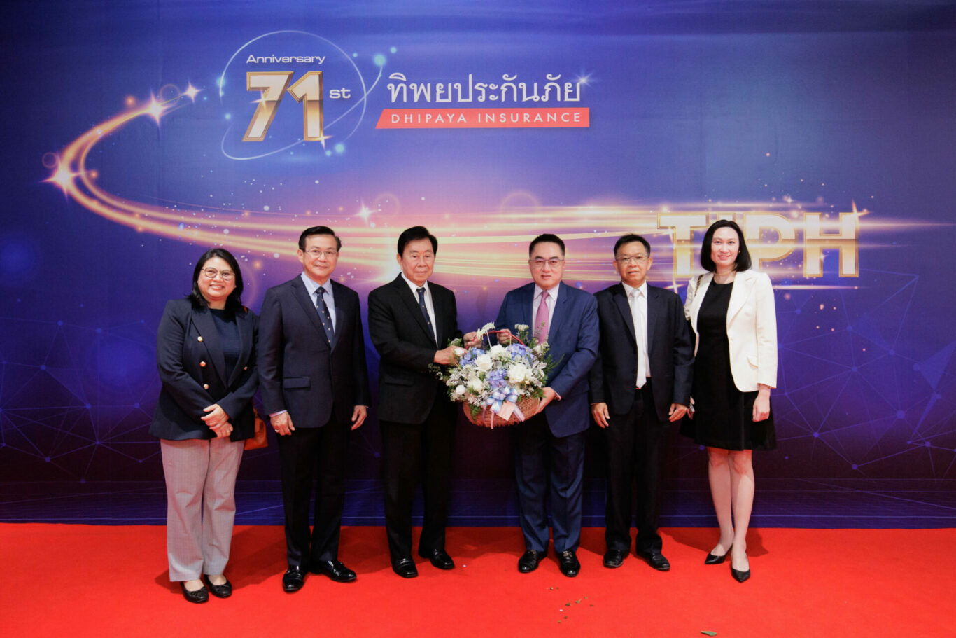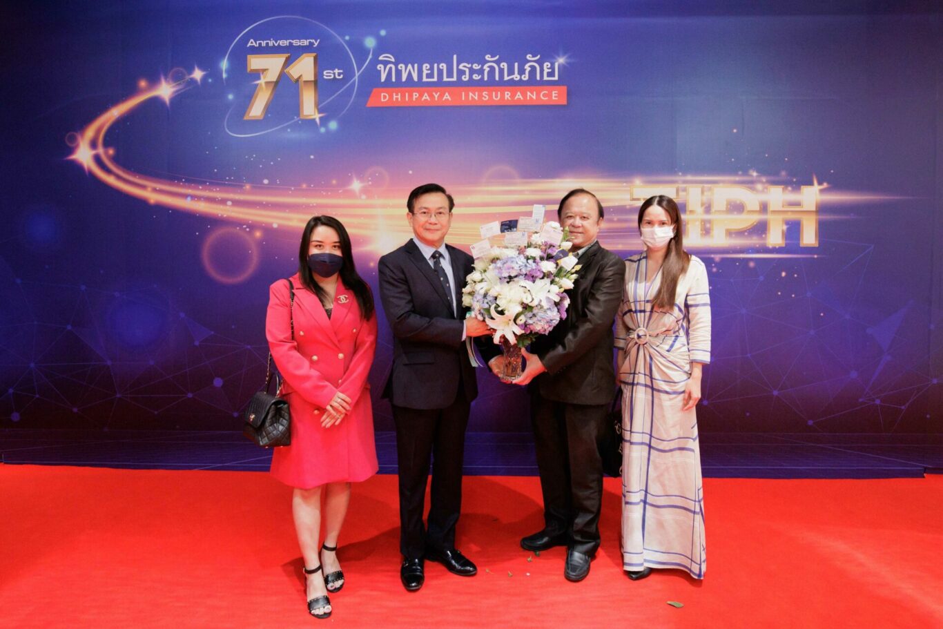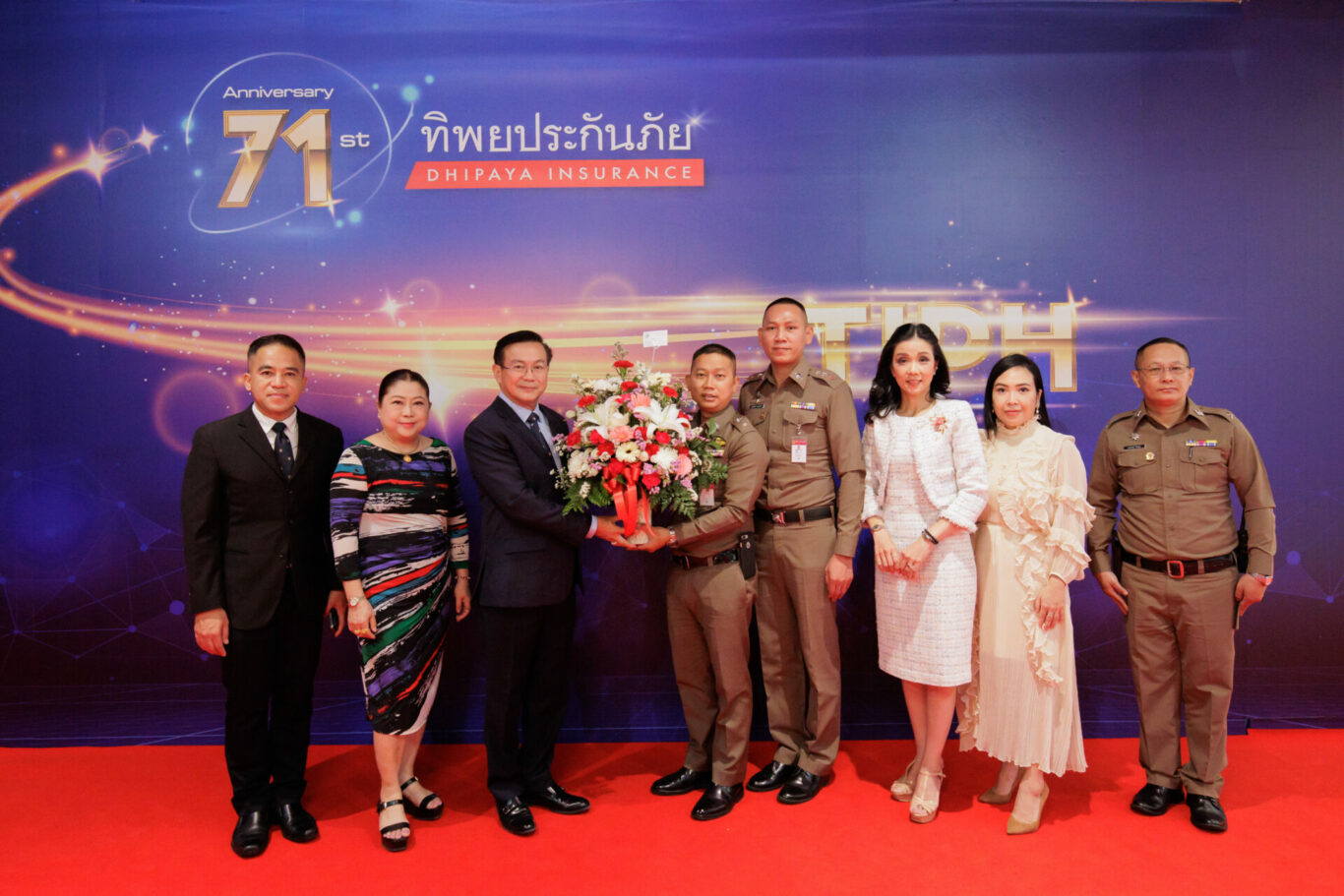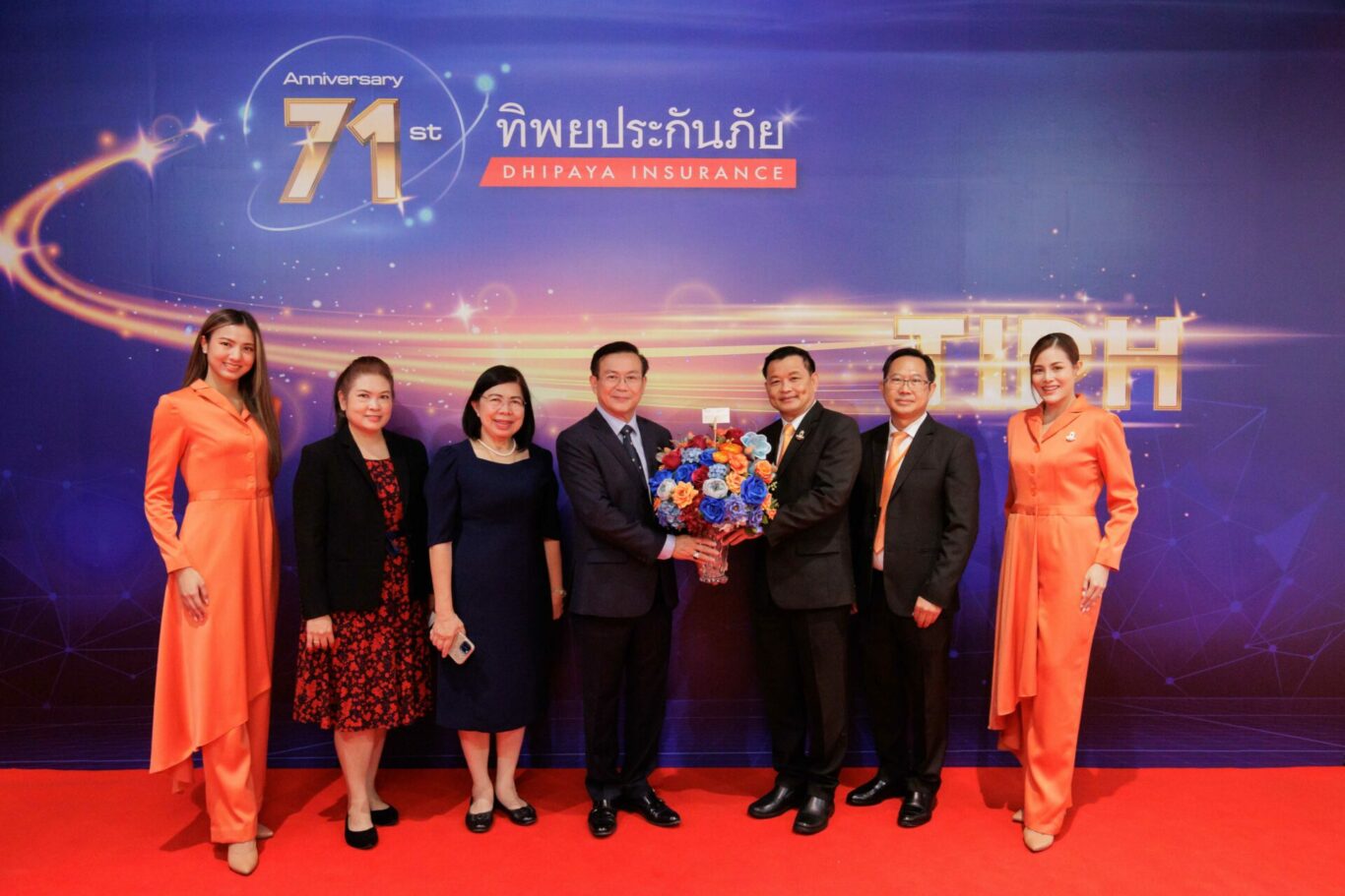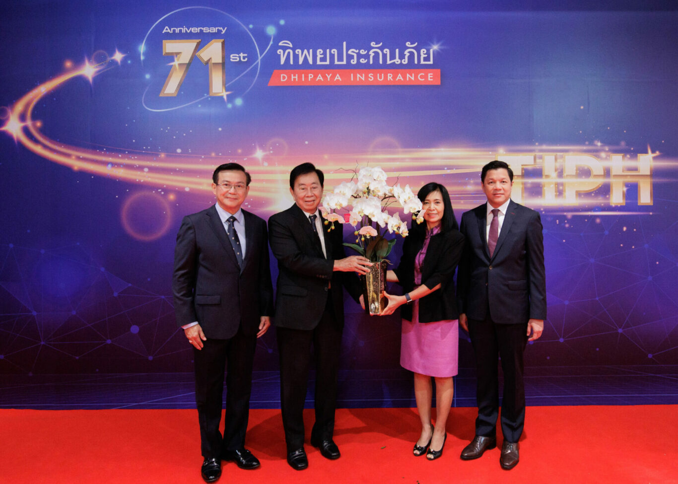 นายสมใจนึก เองตระกูล ประธานกรรมการบริษัท บมจ.ทิพยประกันภัย ดร.สมพร สืบถวิลกุล ประธานเจ้าหน้าที่บริหาร บมจ.ทิพย กรุ๊ป โฮลดิ้งส์ และกรรมการผู้จัดการใหญ่ บมจ.ทิพยประกันภัย พร้อมด้วยคณะกรรมการบริษัท ที่ปรึกษา ผู้บริหาร และพนักงาน บมจ.ทิพยประกันภัย จัดงานครบรอบ 71 ปี ทิพยประกันภัย