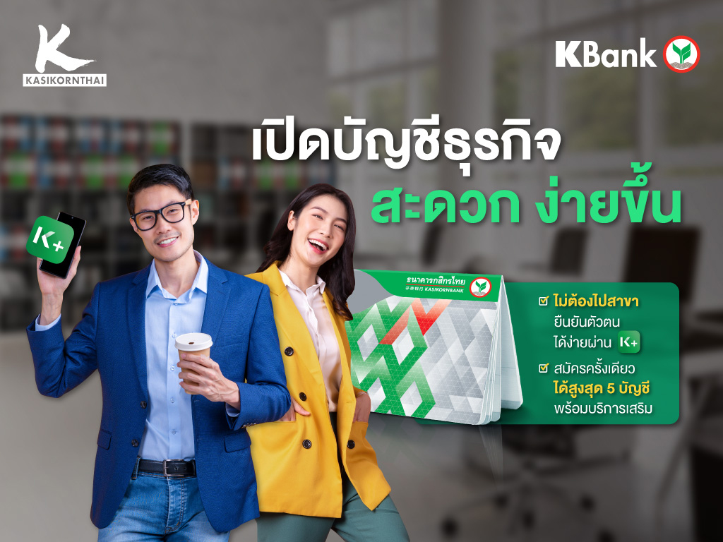 กสิกรไทย เอาใจนักธุรกิจเปิดบัญชีเงินฝากบริษัทง่าย เพียงยืนยันตัวตนผ่าน K PLUS สมัครครั้งเดียวได้ 5 บัญชีและ 5 บริการเสริมพร้อมกัน