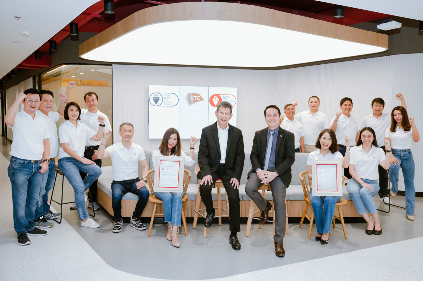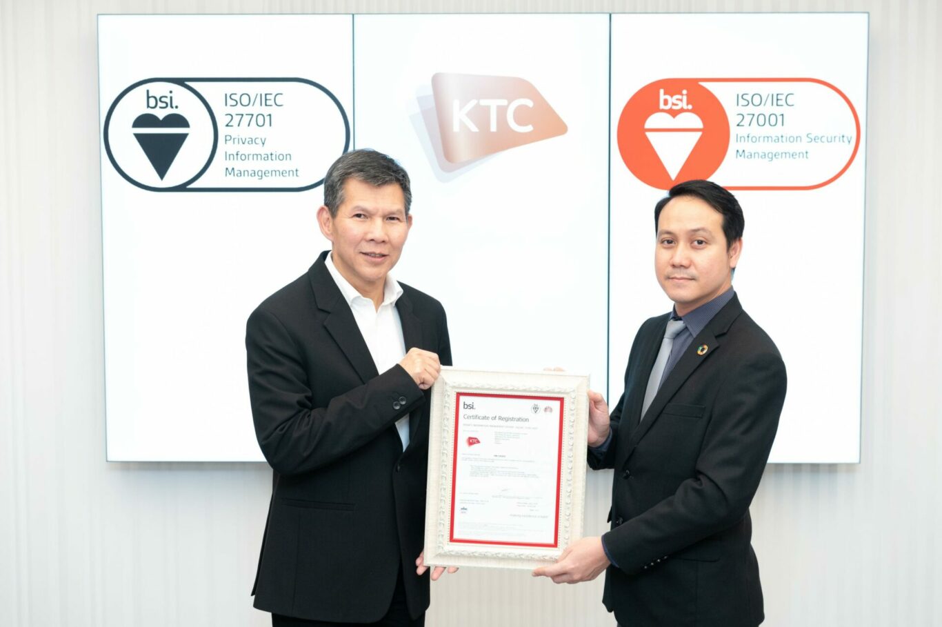 นายระเฑียร ศรีมงคล (กลางซ้าย) ประธานเจ้าหน้าที่บริหาร “เคทีซี” หรือ บริษัท บัตรกรุงไทย จำกัด (มหาชน) พร้อมด้วยตัวแทนสายงานหลัก รับมอบ 2 ใบรับรองมาตรฐานการจัดการความปลอดภัยของข้อมูล ISO/IEC 27001: 2013 และมาตรฐานการจัดการข้อมูลส่วนบุคคล ISO/IEC 27701: 2019 โดยเป็นสถาบันการเงินรายแรกและรายเดียวในประเทศไทย ที่ต่ออายุการรับรองมาตรฐานทั่วองค์กร ครอบคลุมทั้งศูนย์ข้อมูล (Data Center) และทุกกระบวนการทำงานตั้งแต่ต้นน้ำถึงปลายน้ำของธุรกิจหลัก บัตรเครดิต สินเชื่อบุคคลและการรับชำระเงิน ซึ่งการได้รับมาตรฐานสำคัญต่อเนื่องนี้ ช่วยตอกย้ำความเชื่อมั่นและเป็นเครื่องพิสูจน์ให้เห็นว่าเคทีซีมุ่งเน้นความสำคัญกับระบบบริหารจัดการที่มีประสิทธิภาพ ในการปกป้องข้อมูลของลูกค้าและผู้มีส่วนได้เสียทุกภาคส่วนให้ปลอดภัยจากการเข้าถึงที่ไม่ได้รับอนุญาต โดย นายบุคลากร ใจดี (กลางขวา) ผู้จัดการทั่วไปฝ่ายขายและการตลาด บริษัท บีเอสไอ กรุ๊ป (ประเทศไทย) จำกัด สถาบันรับรองมาตรฐานแห่งชาติของประเทศอังกฤษ ให้เกียรติมอบใบรับรองฯ ณ “เคทีซี” อาคารสมัชชาวาณิช 2