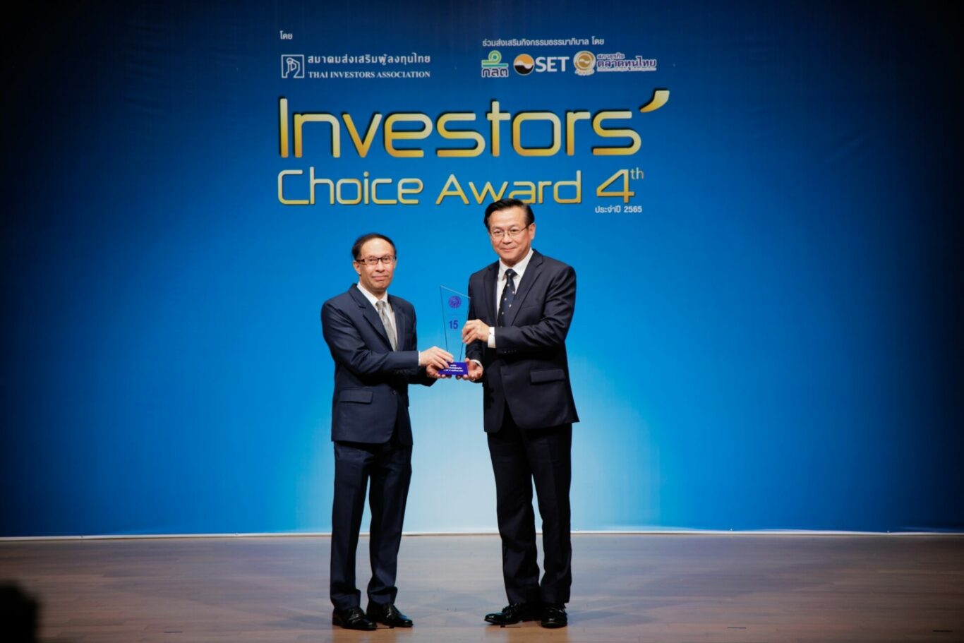 รางวัล “Investors’ Choice Award” เป็นรางวัลแห่งความอุตสาหะของบริษัทจดทะเบียนในตลาดหลักทรัพย์ซึ่งเป็นรางวัลที่ประเมินคุณภาพ บริษัทที่จดทะเบียนในตลาดหลักทรัพย์ในการจัดประชุมผู้ถือหุ้นประจำปี โดยเน้น 2 เรื่องหลัก คือ การเปิดเผยข้อมูล และการให้ความเท่าเทียมกันของผู้ถือหุ้น/ผู้ถือหน่วย จาก 5 ข้อ ของการนำไปประเมินระดับคะแนนธรรมาภิบาลของตลาดทุนไทย เพื่อ เทียบเคียงกับตลาดทุนทั่วโลก ซึ่งจัดโดยสมาคมส่งเสริมผู้ลงทุนไทย