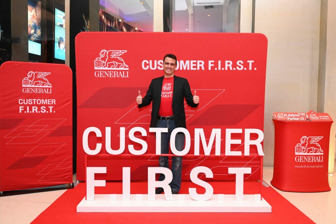 สำหรับแคมเปญ Customer F.I.R.S.T. เป็นการยกระดับมาตรฐานการบริการลูกค้าเจนเนอราลี่ ไทยแลนด์ ด้วยการมอบสิทธิพิเศษเหนือระดับภายใต้แนวคิด การมอบประสบการณ์ใหม่ ๆ (Newness) ที่ล้ำค่า (Finest) สุดสร้างสรรค์ (Creative) และเอ็กซ์คลูซีฟ (Exclusive) ที่จะมาในรูปแบบกิจกรรม Entertainment, Healthy & Beauty, Travel & Food รวมถึง Workshop เป็นต้น โดยจะเริ่มคิกออฟตั้งแต่เดือนพฤศจิกายน 2565 เป็นต้นไป กับกิจกรรม Entertainment ชมภาพยนตร์ดัง “Marvel Studios’ Black Panther: Wakanda Forever” และ “20th Century Studios’ AVATAR: The Way of Water” ก่อนใคร ในโรงภาพยนตร์สุดเอ็กซ์คลูซีฟ Ultimate Screen ที่พารากอน ซีนีเพล็กซ์ ศูนย์การค้าสยามพารากอน ต่อด้วยกิจกรรม Healthy & Beauty กับคลาสออกกำลังกายกีฬาแนวใหม่สัญชาติไทย BungeeWORKOUT รวมถึงกิจกรรม Food & Workshop โดยร่วมมือกับโรงเรียนสอนการประกอบอาหาร เลอ กอร์ดอง เบลอ ดุสิต เปิดคลาสเมนูพิเศษจากเชฟระดับโลก ปิดท้ายด้วยกิจกรรมสุดพิเศษส่งท้ายปีกับการเสริมดวงชะตา ตามโหราศาสตร์เพื่อความเป็นสิริมงคลต้อนรับปีใหม่ที่กำลังจะมาถึง