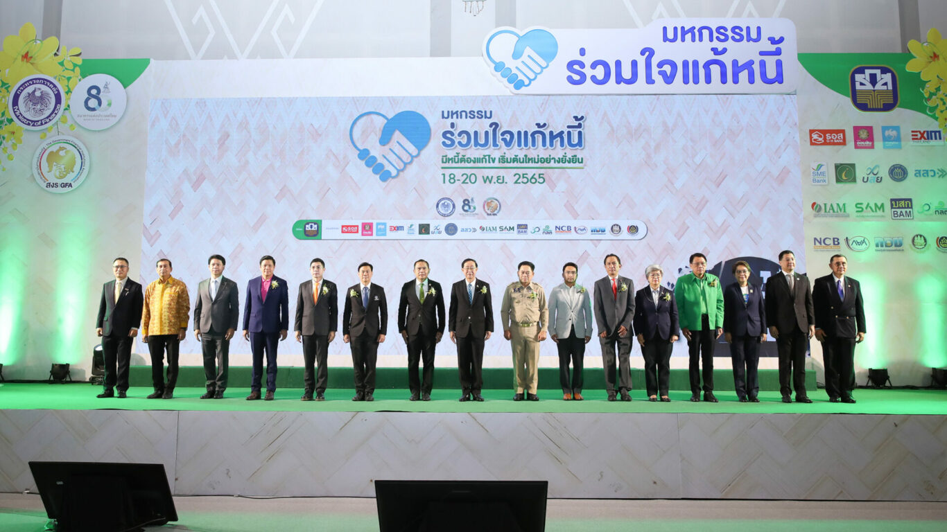 นายอาคม เติมพิทยาไพสิฐ รัฐมนตรีว่าการกระทรวงการคลังและประธานกรรมการธนาคารเพื่อการเกษตรและสหกรณ์การเกษตร (ธ.ก.ส.) พร้อมด้วย นายไกรสร กองฉลาด ผู้ว่าราชการจังหวัดขอนแก่น นายชื่นชอบ คงอุดม ผู้ช่วยรัฐมนตรีประจำสำนักนายกรัฐมนตรี (ปฏิบัติหน้าที่ประจำกระทรวงการคลัง) นายเข้มแข็ง ยุติธรรมดำรง อธิบดีกรมส่งเสริมการเกษตร นายวารุจ ศิริวัฒน์ ผู้ช่วยเลขานุการรัฐมนตรีว่าการกระทรวงการคลัง นายศรัณย์ ธำรงรัตน์ ผู้อำนวยการอาวุโส สำนักงานภาคตะวันออกเฉียงเหนือ ธนาคารแห่งประเทศไทย นายฉัตรชัย ศิริไล ประธานกรรมการสมาคมสถาบันการเงินของรัฐ ผู้บริหารสถาบันการเงิน ผู้บริหารส่วนงานในพื้นที่ จังหวัดขอนแก่น และนายธนารัตน์ งามวลัยรัตน์ ผู้จัดการ ธ.ก.ส. ร่วมเปิดงานมหกรรมร่วมใจแก้หนี้ “มีหนี้ต้องแก้ไข เริ่มต้นใหม่อย่างยั่งยืน” ครั้งที่ 2 และเยี่ยมชมบูธสถาบันการเงินของรัฐที่ให้คำปรึกษาลูกค้าภายในงาน