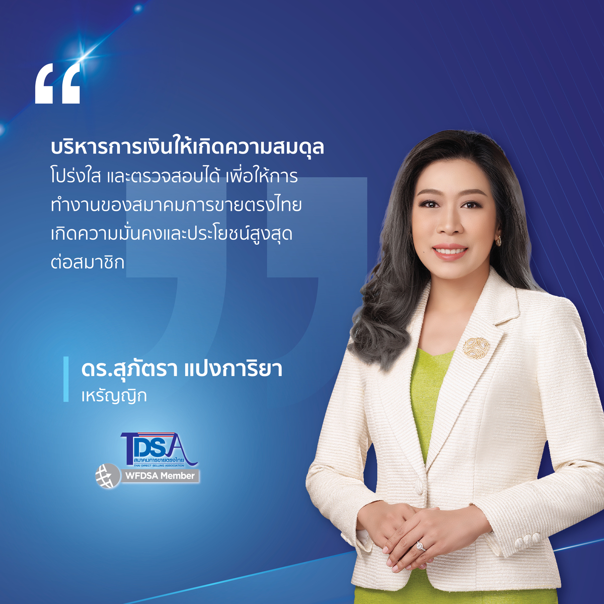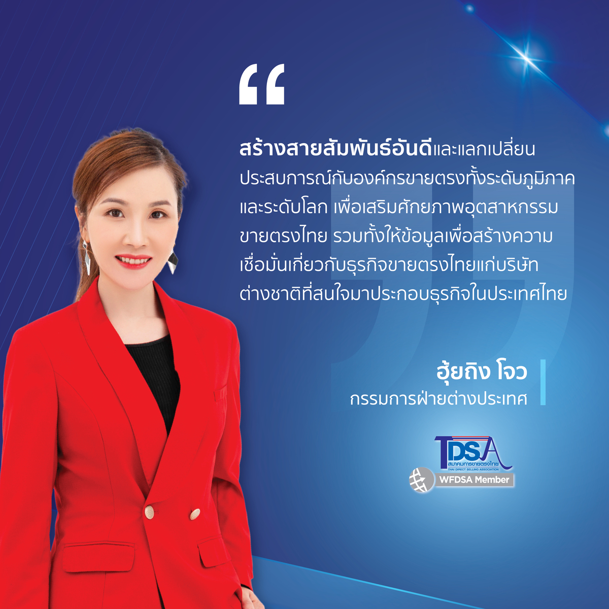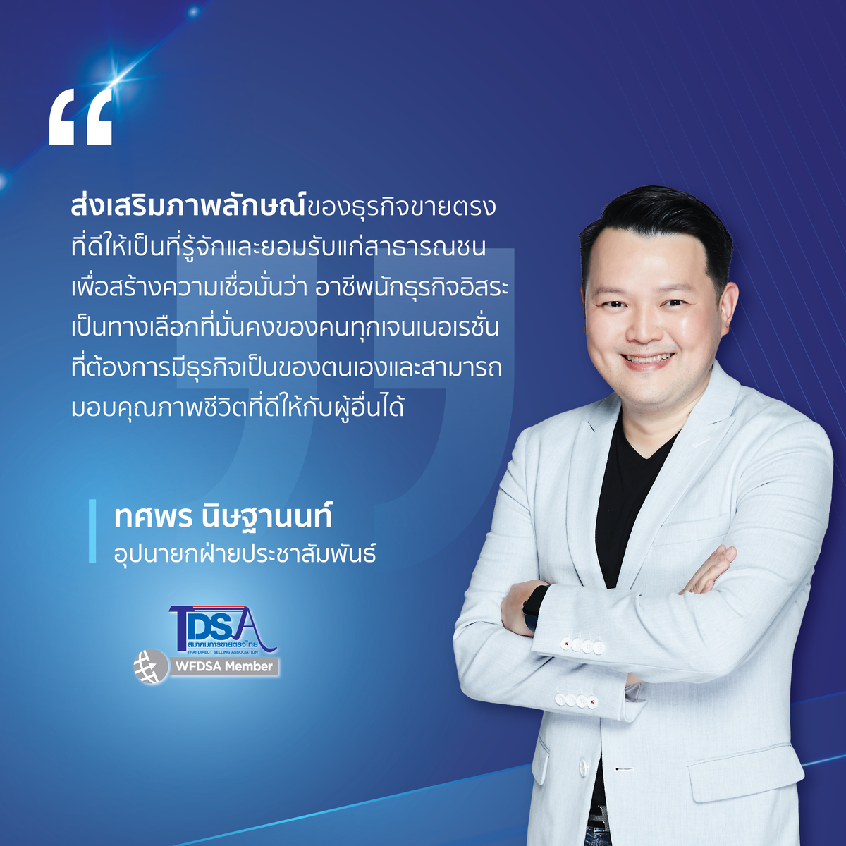 ทั้งนี้ สมาคมการขายตรงไทยซึ่งก่อตั้งมาเป็นเวลาร่วม 40 ปี ยืนยันมาตรฐานและความเป็นเลิศด้านจรรยาบรรณ พิสูจน์ได้จากการได้รับรางวัลต่างๆ จากทั้งระดับโลกและระดับประเทศมาโดยตลอด และเป็นสมาคมเดียว ในประเทศไทยที่เป็นหนึ่งในสมาชิกของสมาพันธ์การขายตรงโลก (World Federation of Direct Selling Associations หรือ WFDSA) มีสมาชิกซึ่งเป็นบริษัทไทยและต่างชาติ 28 บริษัท มีคณะกรรมการบริหารงานสมาคมจำนวน 9 บริษัท มาจากการเลือกตั้งของบริษัทสมาชิก โดยได้แต่งตั้งนายกสมาคมการขายตรงไทย และคณะกรรมการบริหารงานชุดใหม่ วาระกรกฎาคม 2565 – มิถุนายน 2567 ได้แก่
