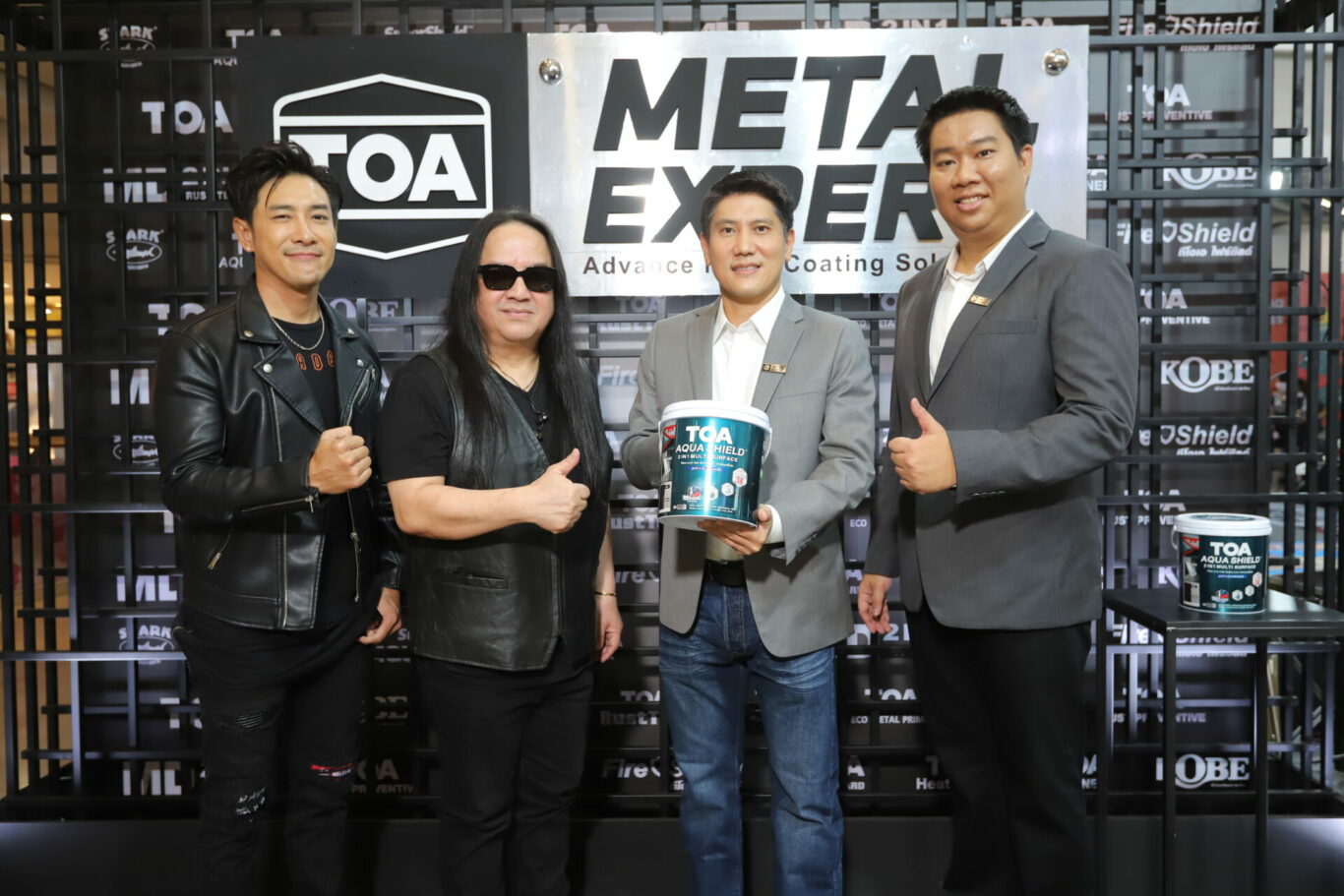 นายจตุภัทร์ ตั้งคารวคุณ ประธานเจ้าหน้าที่บริหาร และ นายนันทพล บุญเหลือ ผู้อำนวยการสายงานการตลาด บริษัท ทีโอเอ เพ้นท์ (ประเทศไทย) จำกัด (มหาชน) หรือ TOA จัดงานเปิดตัวแคมเปญ ‘TOA Metal Expert’ สัญลักษณ์ความเป็นผู้เชี่ยวชาญสีงานเหล็กคุณภาพสูง แบบครบวงจร ตอบสนองเทรนด์การเติบโตของงานเหล็กที่ต้องการสีเคลือบที่มีคุณภาพมารองรับ พร้อมนำเสนอนวัตกรรมใหม่ล่าสุดครั้งแรกในประเทศไทย ‘TOA AQUA SHIELD’ สีเคลือบทับหน้ารวมรองพื้นกันสนิมสูตรน้ำ ทาได้หลากหลายพื้นผิว กระป๋องเดียวครบทุกความต้องการ สอดคล้องกับการขับเคลื่อนกลยุทธ์องค์กรเพื่อรักษาความเป็นผู้นำตลาดในกลุ่มสีทาอาคาร No.1 Brand ภายใต้มินิคอนเสิร์ตระเบิดพลังร็อกกับสุดยอดเฮฟวี่เมทัลรุ่นใหญ่ หิน เหล็ก ไฟ พร้อมพิธีกรหนุ่ม บอย ภิษณุ จุฑานิ่มสกุล ที่มาปลุกพลังดนตรีร็อกในตัวของแขกและสื่อมวลชนให้เดือดอีกครั้งภายในงาน ที่เซ็นทรัลพลาซา แกรนด์ พระราม 9 เมื่อวันก่อน