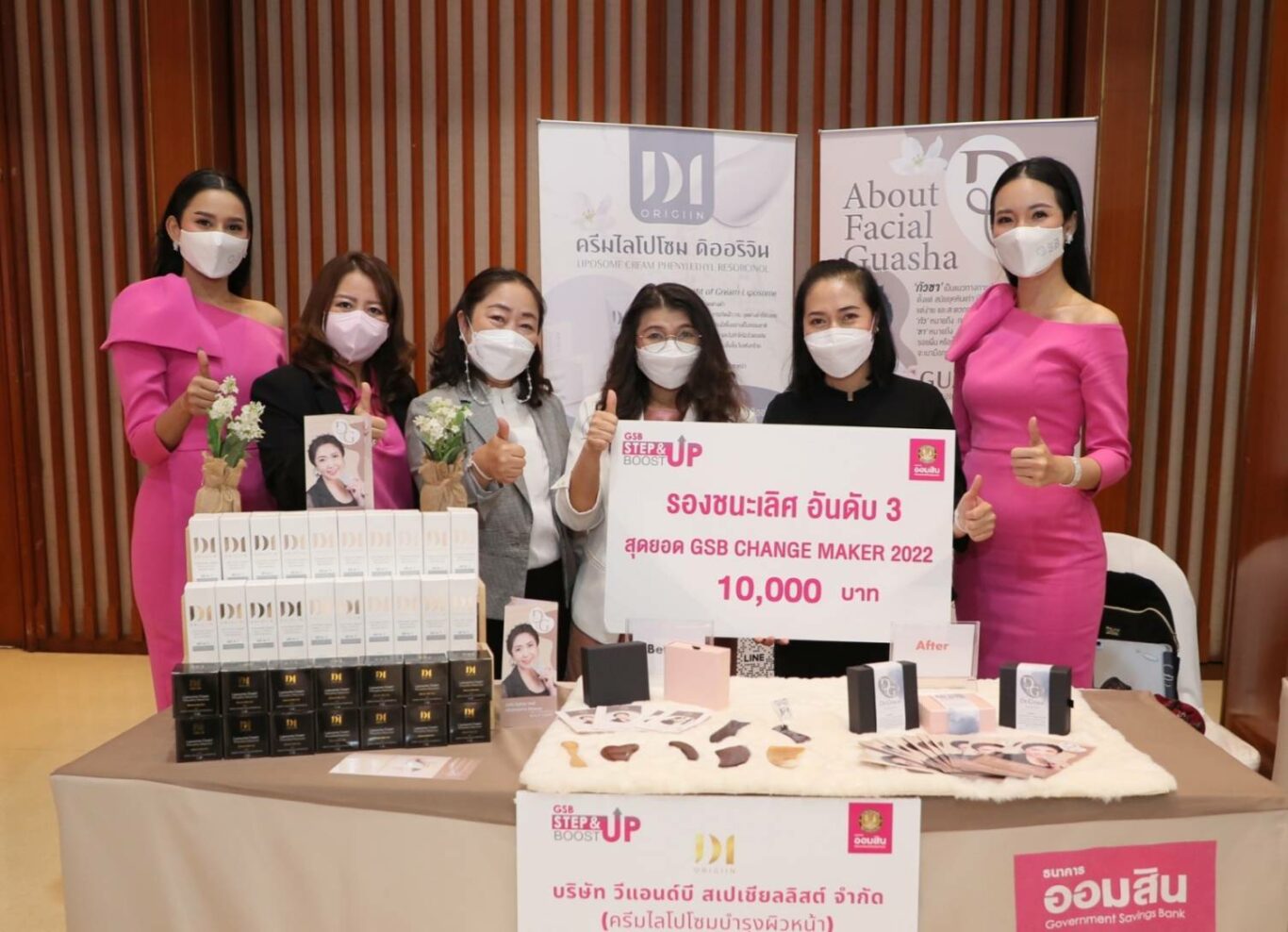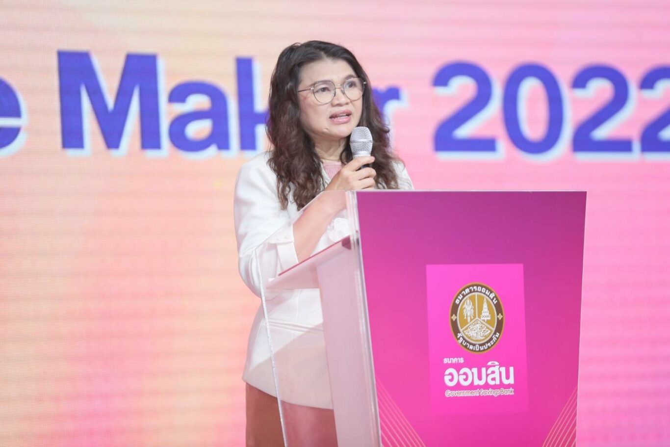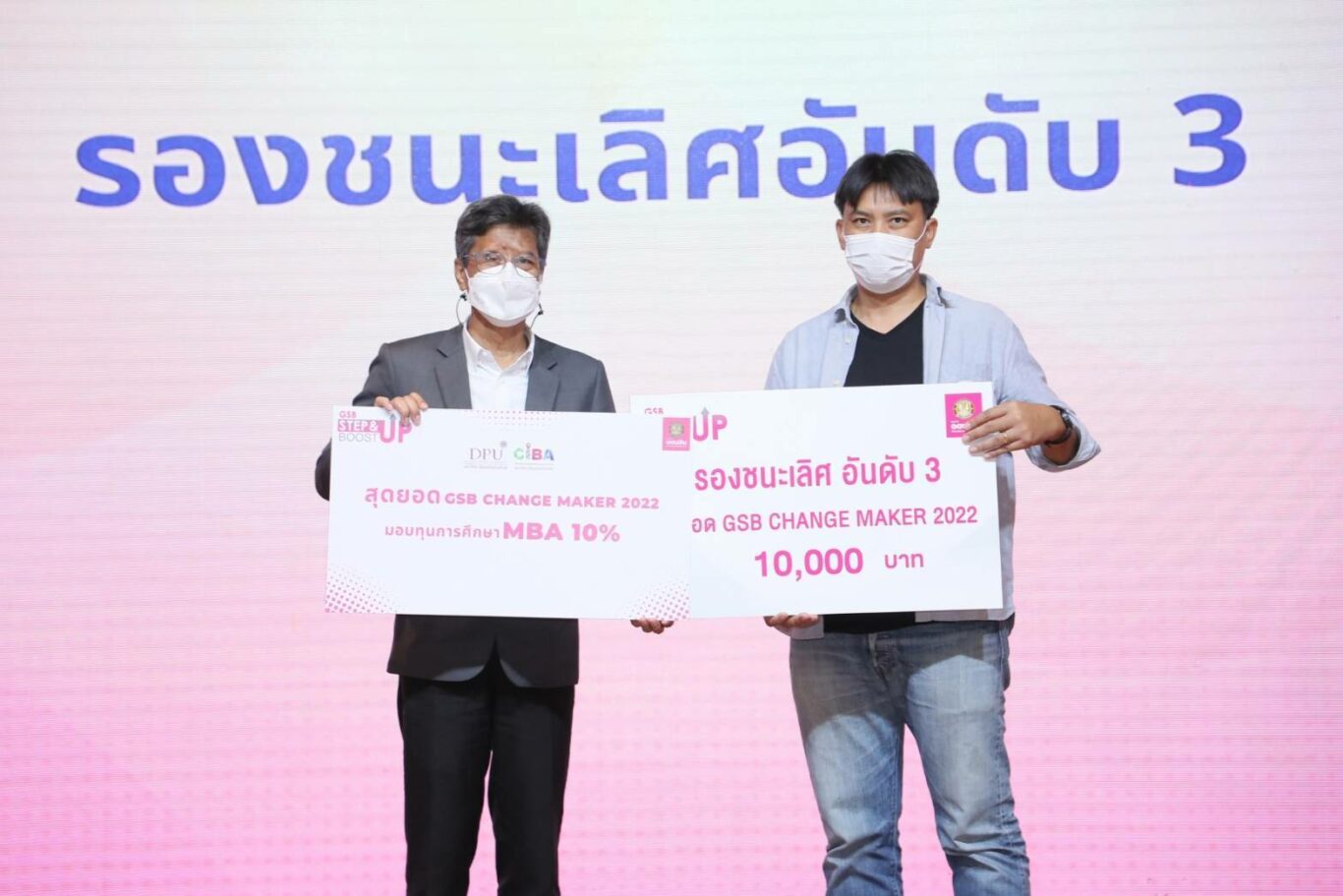 นางปรางมาศ เธียรธนู พร้อมด้วย นายสัณฐาน อยู่ศิริ รองผู้อำนวยการธนาคารออมสิน ร่วมเป็นประธานในพิธีมอบรางวัล “สุดยอด GSB Change Maker 2022” ซึ่งเป็นการประกวดแผนธุรกิจเพื่อต่อยอด ภายใต้โครงการพัฒนาศักยภาพทางธุรกิจ Step & Boost up Program ประจำปี 2565