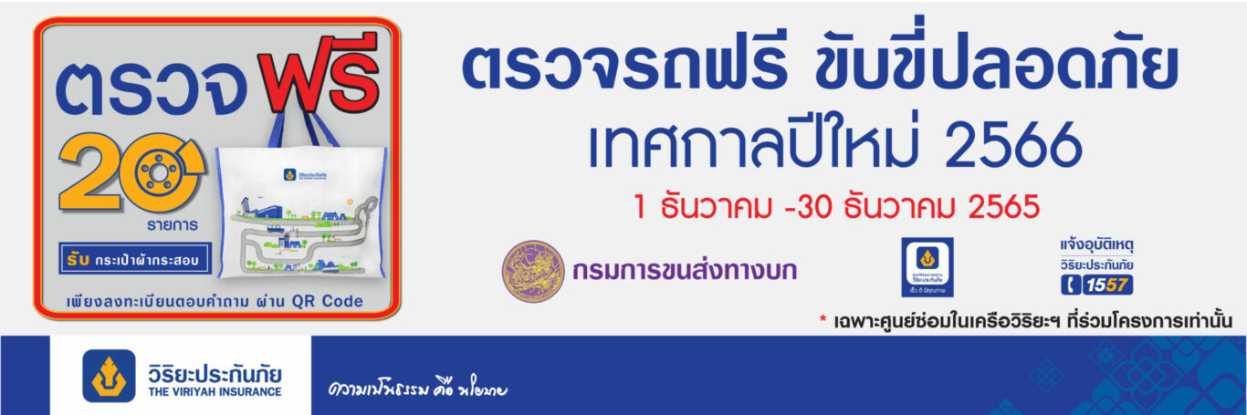 วิริยะประกันภัย ร่วมกับ กรมการขนส่งทางบก บูรณาการรณรงค์ความปลอดภัยบนท้องถนน จัดกิจกรรม “ตรวจรถฟรี ขับขี่ปลอดภัย” ช่วงเทศกาลปีใหม่ 2566 มุ่งหวังลดอุบัติเหตุในการใช้รถใช้ถนน และกระตุ้นเตือนให้ประชาชนตระหนักถึงความสำคัญของการตรวจสภาพรถยนต์ก่อนออกเดินทาง พร้อมให้บริการตรวจสภาพรถยนต์เบื้องต้นฟรี 20 รายการ ณ ศูนย์ซ่อมมาตรฐานวิริยะประกันภัย 31 แห่ง ในพื้นที่กรุงเทพฯ และปริมณฑล วันนี้ ถึง 30 ธ.ค. 65