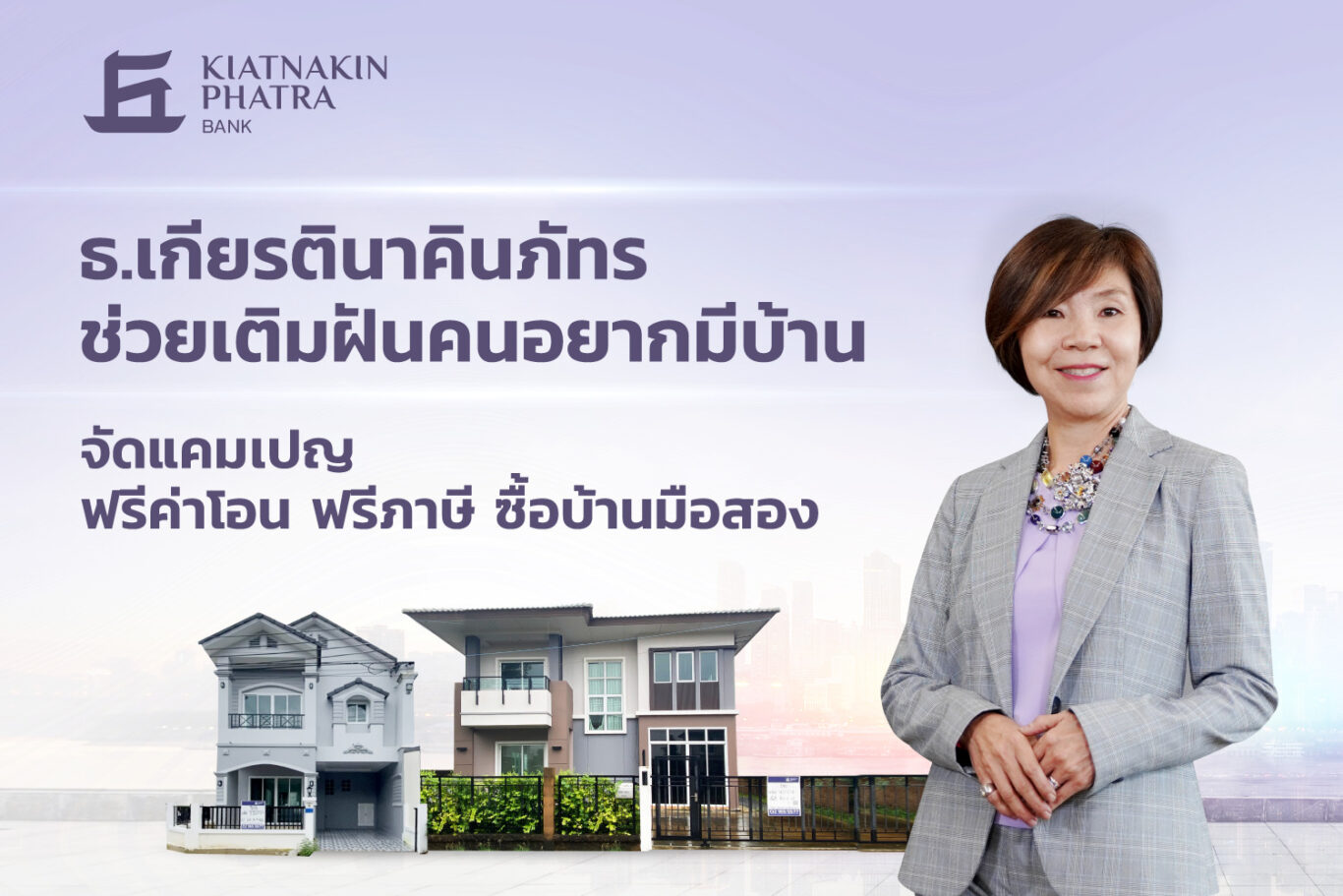 นางสุวรรณี วัธนเวคิน ผู้ช่วยกรรมการผู้จัดการใหญ่ หัวหน้าฝ่ายบริหารทรัพย์สินรอขาย (Foreclosed Property Management Department: FPMD) สายบริหารหนี้ ธนาคารเกียรตินาคินภัทร จำกัด (มหาชน) เปิดเผยว่าแม้ปัจจุบันเศรษฐกิจจะอยู่ในภาวะชะลอตัวและดอกเบี้ยอยู่ในช่วงขาขึ้น แต่สำหรับลูกค้าบางกลุ่ม การซื้อบ้านยังเป็นสิ่งจำเป็น และคุ้มค่า โดยเฉพาะเมื่อได้พบกับทรัพย์สินที่ตั้งอยู่ในทำเลที่ต้องการ ดังนั้น ธนาคารจึงจัดแคมเปญ “KKP ช่วยลดภาระค่าใช้จ่าย ให้คุณมีบ้านตามฝันง่ายขึ้น” เพื่อลดภาระและอำนวยความสะดวกให้กับคนที่ต้องการซื้อทรัพย์รอขายของธนาคารให้สามารถดำเนินการได้โดยไม่เสียโอกาส ได้แก่ การลดภาษีและค่าใช้จ่ายจำนวนมากที่มักมาพร้อมกับการซื้อบ้าน เช่น ค่าธรรมเนียมการโอนกรรมสิทธิ์ ค่าภาษีเงินได้ ค่าภาษีธุรกิจเฉพาะ ค่าอากรแสตมป์ หรือค่าส่วนกลาง ฯลฯ ตลอดจนการตรวจสอบและจัดเตรียมข้อมูลเกี่ยวกับทรัพย์สินไว้อย่างครบถ้วน ไม่ว่าเรื่องเอกสารสิทธิ์ ทำเลที่ตั้ง หรือราคาที่สอดคล้องกับตลาด เพื่อเอื้อต่อการพิจารณาของลูกค้ามากที่สุด อีกทั้งป้องกันความเสี่ยงเรื่องปัญหาการโอนกรรมสิทธิ์หรือการเอาทรัพย์สินไปขายต่อในอนาคต