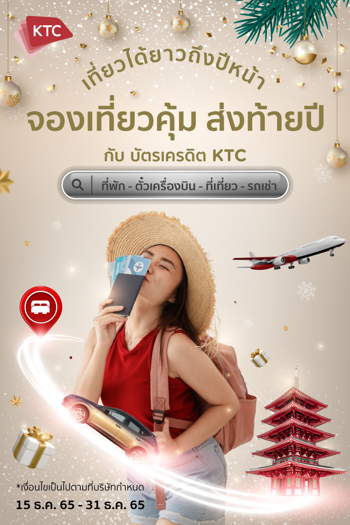 “เคทีซี” หรือ บริษัท บัตรกรุงไทย จำกัด (มหาชน) เล็งเห็นถึงความสำคัญในเรื่องการเดินทางท่องเที่ยว โดยในช่วงที่ประเทศไทยเปิดประเทศในเดือนพฤษภาคม – ตุลาคม 2565 ยอดรวมการใช้จ่ายผ่านบัตรเครดิตเคทีซีในหมวดท่องเที่ยวปรับตัวเพิ่มขึ้นถึง 257% และเพื่อมอบสิทธิประโยชน์ในการเดินทางท่องเที่ยวในช่วงปลายปี เคทีซีจึงได้จัดโปรโมชัน “เที่ยวสุดคุ้ม ส่งท้ายปี” สมาชิกใช้จ่ายผ่านบัตรเครดิตเคทีซีในหมวดท่องเที่ยวที่ร่วมรายการ อาทิ การจองตั๋วเครื่องบิน / ห้องพัก / แพ็คเกจท่องเที่ยว / สวนน้ำ สวนสนุก และการขับรถเช่า รับสิทธิพิเศษถึง 2 ต่อ ตั้งแต่วันที่ 15 – 31 ธันวาคม 2565 ดังนี้