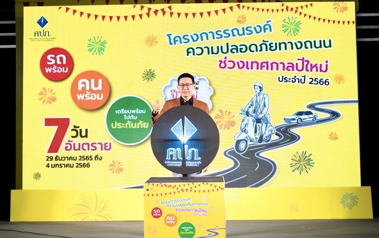 ซึ่งสำนักงาน คปภ. ได้รับความร่วมมือจากบริษัทประกันชีวิต และบริษัทประกันวินาศภัยร่วมรณรงค์โครงการ เพื่อให้องค์กรเครือข่ายหรือหน่วยงานที่เกี่ยวข้อง ได้นำไปใช้ประกอบการจัดกิจกรรมให้เกิดประโยชน์ นอกจากนี้ยังมีกิจกรรมการเปลี่ยนถ่ายน้ำมันเครื่องและการเปลี่ยนหลอดไฟสำหรับรถจักรยานยนต์ ณ สำนักงาน คปภ. ซึ่งได้รับความร่วมมือจากภาคเอกชนในการร่วมสนับสนุนกิจกรรมดังกล่าว รวมทั้งกิจกรรมการให้บริการประชาชนด้านการประกันภัยตลอด 24 ชั่วโมง ในช่วง 7 วัน อันตราย (ตั้งแต่วันที่ 29 ธันวาคม 2565 – 4 มกราคม 2566) ผ่านช่องทางสายด่วน คปภ. 1186 รวมทั้งการแถลงข่าวเปิดตัว “กรมธรรม์ประกันภัยกลุ่มปีใหม่เที่ยวไทยปลอดภัย และกรมธรรม์ประกันอัคคีภัยปีใหม่สุขใจ บ้านปลอดภัย (ไมโครอินชัวรันส์)” ซึ่งสำนักงาน คปภ. ได้พัฒนาผลิตภัณฑ์ประกันภัยดังกล่าวให้มีความพิเศษกว่าทุก ๆ ปี เพื่อให้ครอบคลุมทั้งการเดินทางและที่อยู่อาศัย และสามารถตอบโจทย์ความต้องการของประชาชนมากที่สุด
