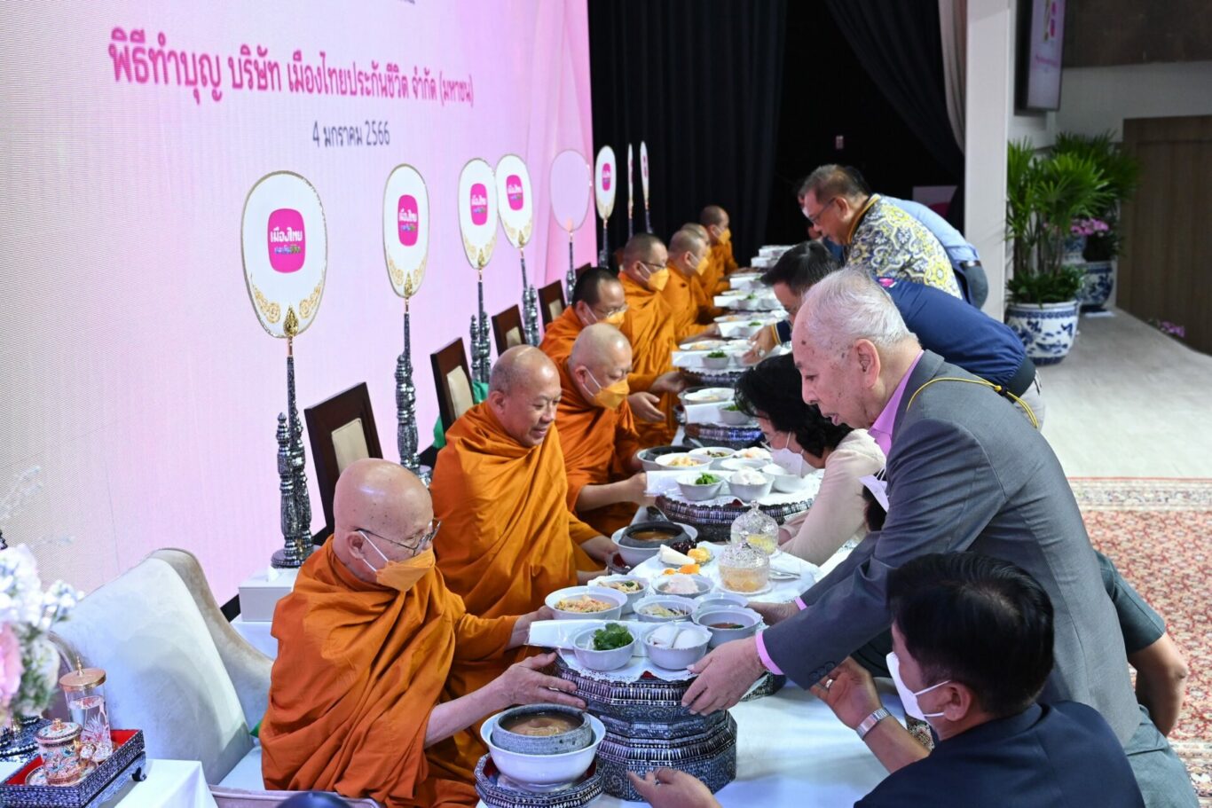 บริษัท เมืองไทยประกันชีวิต จำกัด (มหาชน) จัดพิธีทำบุญเนื่องในโอกาสต้อนรับปีใหม่ ปี 2566 เริ่มต้นศักราชใหม่กับปีกระต่ายทอง (ปีเถาะ) เพื่อความเป็นสิริมงคลแก่ผู้บริหารและพนักงานทุกท่าน โดยมี นายโพธิพงษ์ ล่ำซำ ประธานกรรมการ เป็นประธานในพิธี พร้อมด้วย นางยุพา ล่ำซำ นายสาระ ล่ำซำ ประธานเจ้าหน้าที่บริหาร ดร.สุธี โมกขะเวส กรรมการผู้จัดการผู้บริหารและพนักงาน