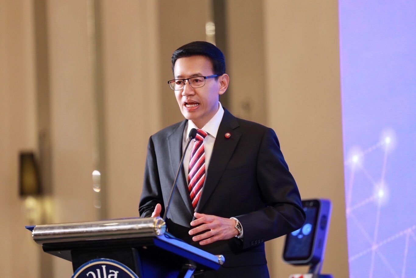 ในโอกาสนี้ นายอาคม เติมพิทยาไพสิฐ รัฐมนตรีว่าการกระทรวงการคลัง ได้กล่าวปาฐกถาพิเศษในหัวข้อ “นโยบายการพัฒนาเศรษฐกิจและสังคมที่ยั่งยืนของประเทศกับบทบาทของการประกันภัยภายใต้ New Challenges” โดยมีใจความสำคัญตอนหนึ่งว่า นโยบายการพัฒนาเศรษฐกิจและสังคมที่ยั่งยืนของประเทศนับจากนี้ไปต้องมุ่งเน้นที่ 5 ประเด็นหลัก คือ ประเด็นแรก การปรับเปลี่ยนไปสู่เศรษฐกิจดิจิทัล (Digitalization for digital economy) ประเด็นที่ 2 ข้อตกลงแก้ปัญหาการเปลี่ยนแปลงของสภาพภูมิอากาศ (Climate change commitment) ประเด็นที่ 3 การเปลี่ยนโครงสร้างการใช้พลังงาน (Energy Transition) ประเด็นที่ 4 ประชากรผู้สูงอายุ (Aging population) และประเด็นที่ 5 ความยั่งยืนทางการคลัง (Fiscal sustainability)