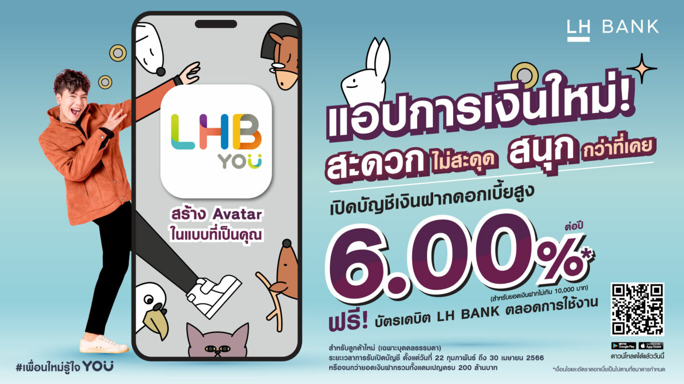 LH Bank ยกระดับบริการแพลตฟอร์มดิจิทัล ส่งแอปพลิเคชัน “LHB You” เพื่อนใหม่รู้ใจ You พร้อมออกเงินฝากออมทรัพย์ดิจิทัล “บียู แม็กซ์” ดอกเบี้ยสูง 6.00% ต่อปี ฟรีบัตรเดบิต ฟรีค่าธรรมเนียมตลอดการใช้งาน