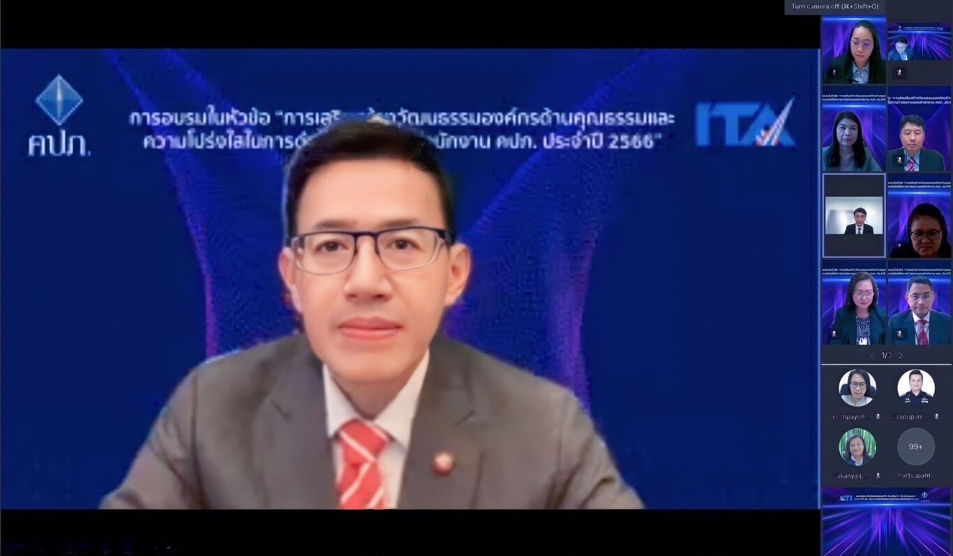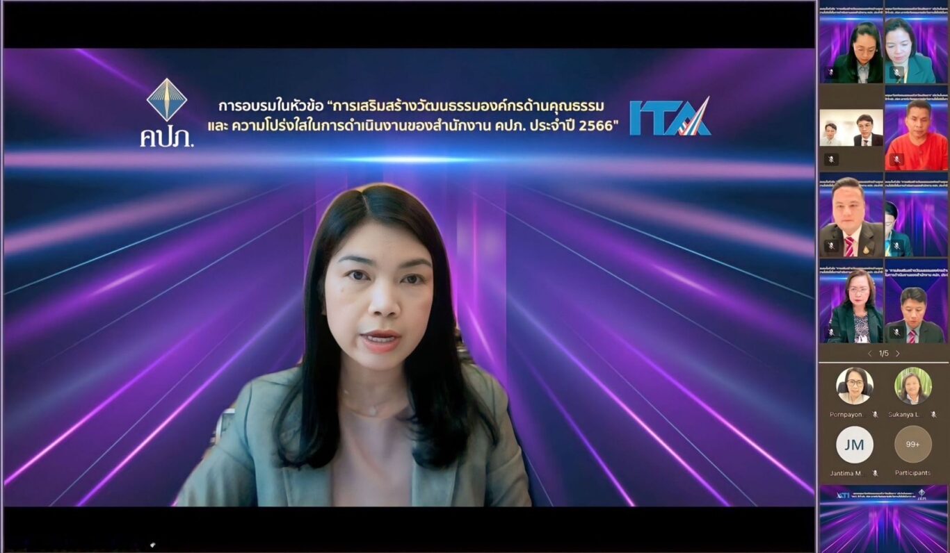ดร. สุทธิพล ทวีชัยการ เลขาธิการคณะกรรมการกำกับและส่งเสริมการประกอบธุรกิจประกันภัย (เลขาธิการ คปภ.) เป็นประธานเปิดการอบรมให้กับบุคลากรของสำนักงาน คปภ. ในหัวข้อ “การเสริมสร้างวัฒนธรรมองค์กรด้านคุณธรรมและความโปร่งใสในการดำเนินงานของสำนักงาน คปภ. ประจำปี 2566” เมื่อวันที่ 21 กุมภาพันธ์ 2566 ผ่านระบบ Microsoft Teams โดยมีวัตถุประสงค์เพื่อเป็นการเตรียมความพร้อมสำหรับการเข้ารับการประเมินคุณธรรมและความโปร่งใสในการดำเนินงานของหน่วยงานภาครัฐ หรือ ITA (Integrity and Transparency Assessment) ในปี 2566 ในการเสริมสร้างวัฒนธรรมด้านคุณธรรมและองค์กรด้านความโปร่งใสในการดำเนินงานของสำนักงาน คปภ.