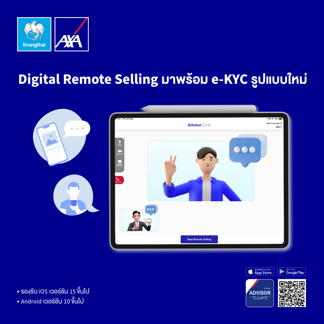 Digital Remote Selling เป็นการขายประกันชีวิตในรูปแบบดิจิทัล ผ่านแอปพลิเคชัน Advisor Zone และนำเทคโนโลยีการระบุตัวตนและพิสูจน์ทราบตัวตนทางอิเล็กทรอนิกส์ (e-KYC) รูปแบบใหม่มาใช้ร่วมกัน ซึ่งเครื่องมือนี้เป็นอีกหนึ่งช่องทางการขายที่ทันสมัย เพิ่มความสะดวกสบายให้กับทั้งฝ่ายขายและลูกค้า