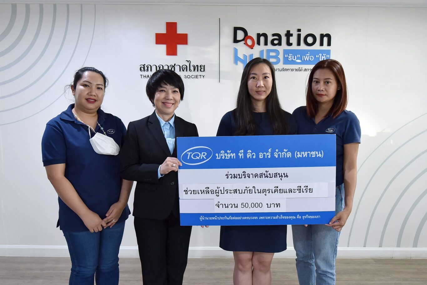 นางปาริฉัตร โชติภูมิเวทย์ (ที่ 2 จากขวา) ผู้อำนวยการสายงานบัญชีและการเงิน บริษัท ที คิว อาร์ จำกัด (มหาชน) (TQR) ตัวแทนบริษัทฯ มอบเงินบริจาคจำนวน 50,000 บาท เพื่อช่วยเหลือผู้ประสบภัยจากเหตุแผ่นดินไหวในตุรเคียและสาธารณรัฐอาหรับซีเรีย โดยมี นางจันทร์ประภา วิชิตชลชัย (ที่ 2 จากซ้าย) รองผู้อำนวยการสำนักงานจัดหารายได้ สภากาชาดไทย เป็นผู้รับมอบ ซึ่ง TQR ขอสนับสนุนในการช่วยเหลือประชาชนที่ได้รับความเดือดร้อนจากผลกระทบจากภัยพิบัติที่เกิดขึ้นในครั้งนี้ กิจกรรมดังกล่าวจัดขึ้น ณ สภากาชาดไทย ถ.อังรีดูนังต์ เมื่อเร็วๆ นี้