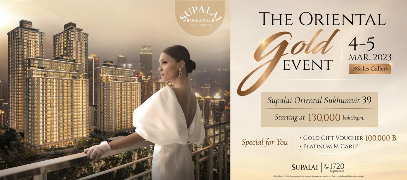 บริษัท ศุภาลัย จำกัด (มหาชน) จัดงานสุดเอ็กซ์คลูซีฟ The Oriental Gold Event มอบประสบการณ์ใหม่แห่งการอยู่อาศัยของคอนโดมิเนียมหรู สร้างสรรค์เสร็จสมบูรณ์งดงาม บนทำเลใจกลางสุขุมวิท “ศุภาลัย โอเรียนทัล สุขุมวิท 39” ราคาเริ่มต้น 130,000 บาท ต่อตารางเมตร มอบสิทธิพิเศษเหนือระดับ ภายในงานวันที่ 4 – 5 มี.ค. นี้