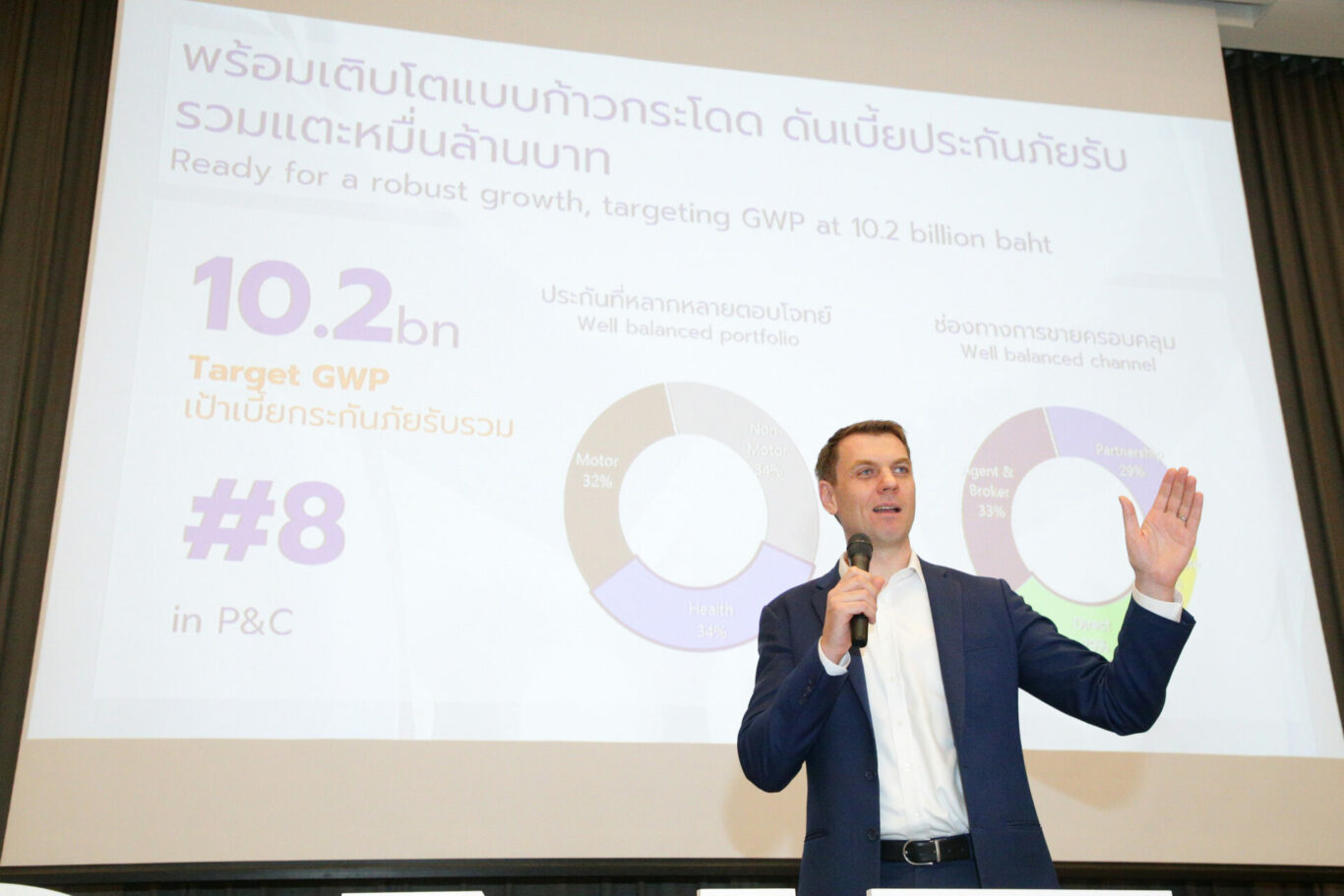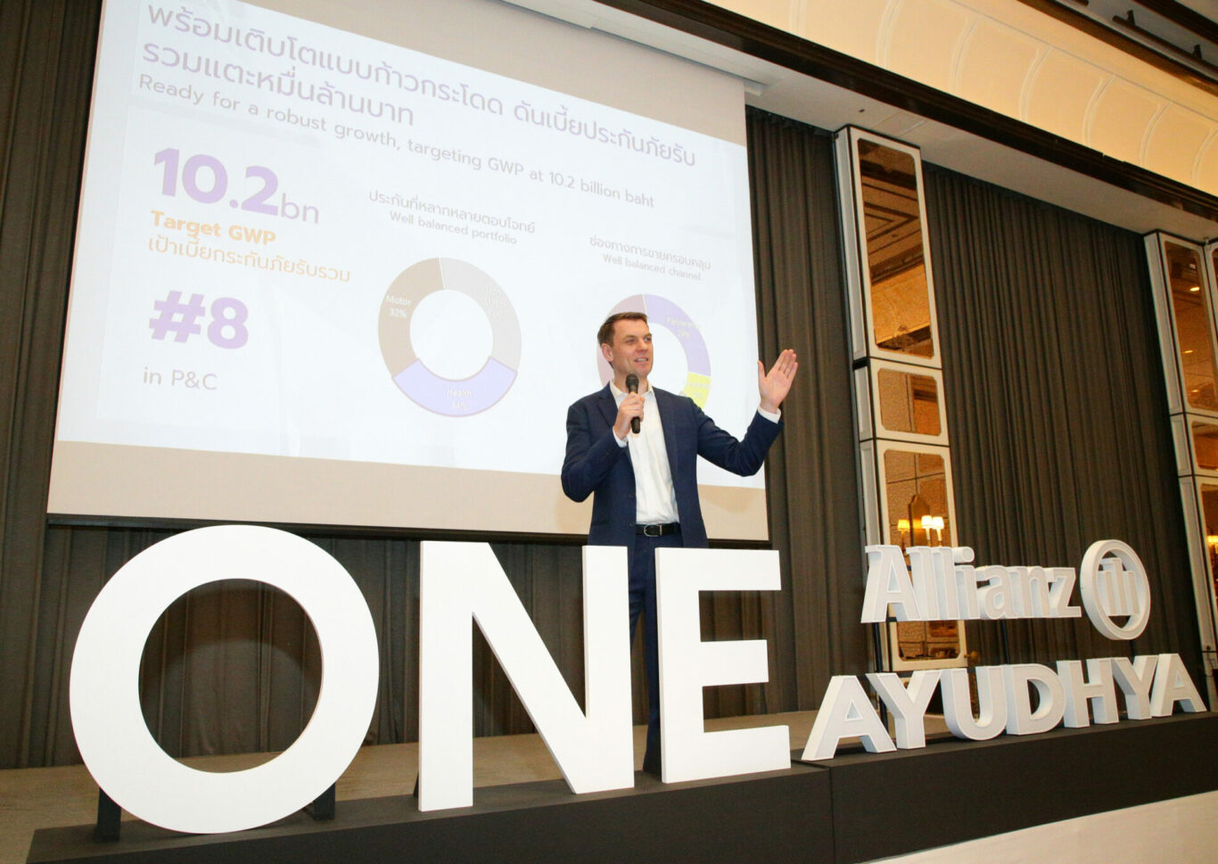 “สำหรับปี 2566 นี้ ถือเป็นปีที่อลิอันซ์ อยุธยา ประกันภัย อยู่ในจุดที่แข็งแกร่งพร้อมสร้างการเติบโต ด้วย แบรนด์ที่มีความแข็งแกร่ง ความมั่นคงด้านการเงิน และความเชี่ยวชาญทางธุรกิจทั้งวินาศภัยและสุขภาพ เราพร้อมมอบผลิตภัณฑ์และบริการที่ดีที่สุดให้กับลูกค้า โดยตั้งเป้าสร้างเบี้ยประกันภัยรับรวมที่ 1.02 หมื่นล้านบาทในปีนี้” มร.ลาร์ส ไฮบุทสกี้ กล่าวทิ้งท้าย