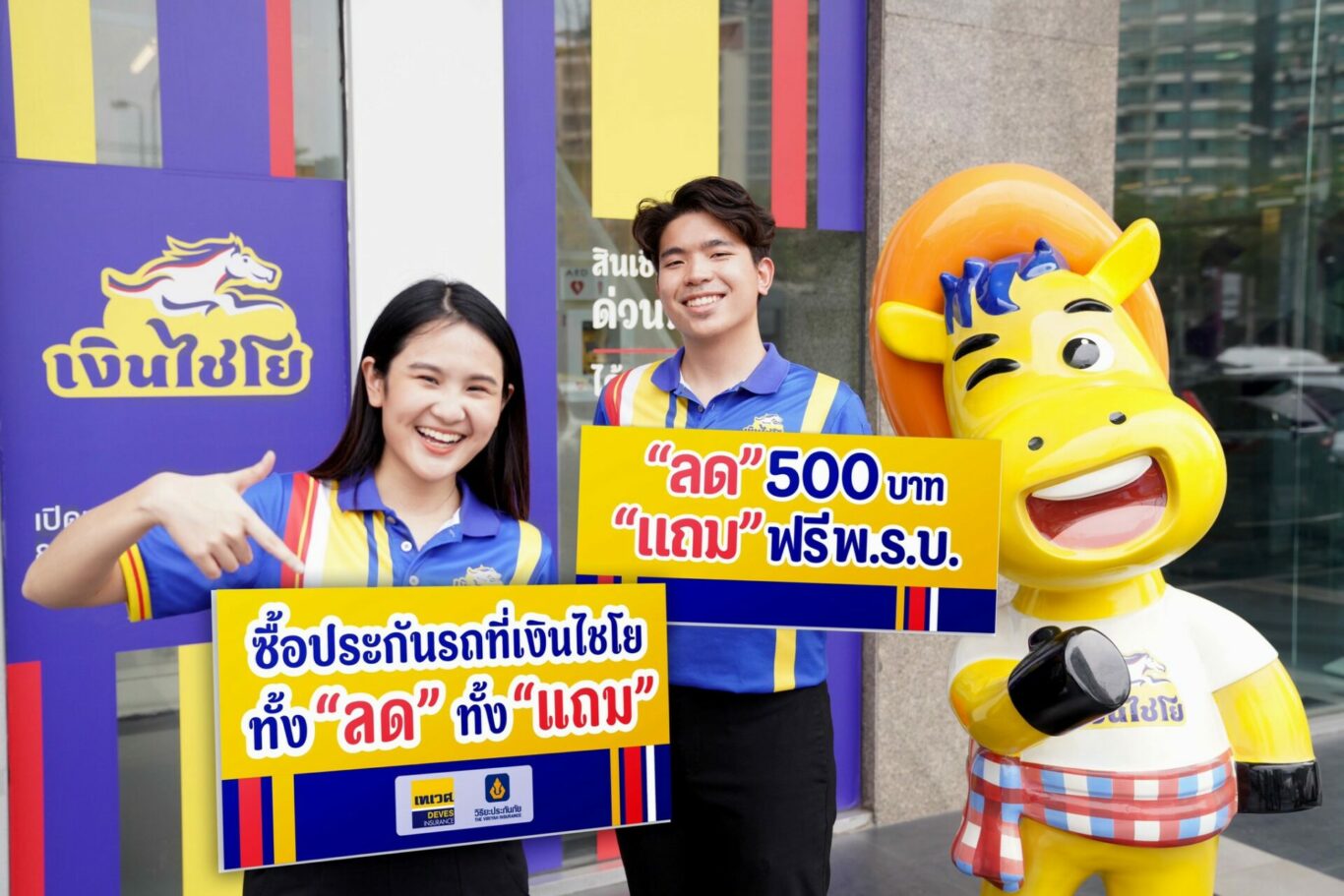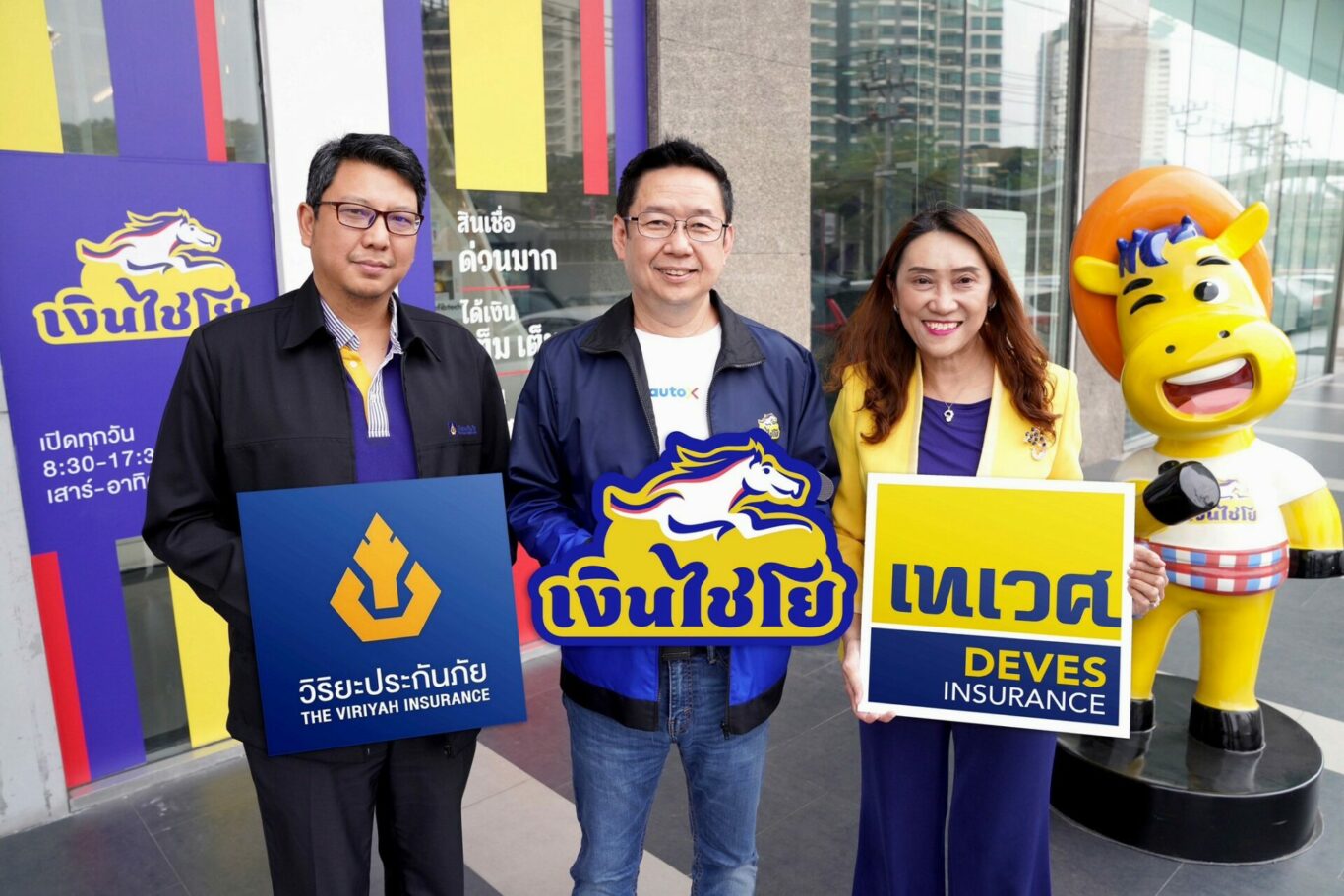 สามารถเลือกประเภทประกันภัยได้ตามต้องการ รับความคุ้มครองและได้รับกรมธรรม์ทันทีไม่ต้องรอ พิเศษสุด สำหรับช่วงเปิดตัว ทั้งลด ทั้งแถม เมื่อซื้อประกันภัยรถยนต์ชั้น 2+ ของเทเวศประกันภัย หรือ วิริยะประกันภัย ที่ “เงินไชโย” ลดค่าเบี้ยประกันภัยสูงถึง 500 บาท แถมฟรี พ.ร.บ. จองซื้อล่วงหน้าได้ มีไว้อุ่นใจ ไฟไหม้ก็เคลมได้ รถหายก็เคลมได้ คุ้มครองคุ้มค่า ราคาสบายใจ พร้อมเปิดขายแล้ววันนี้ที่เงินไชโยทุกสาขาทั่วประเทศ โดยมี นายธีรเมศร์ ศศิรวีโรจน์ ประธานเจ้าหน้าที่บริหารกลุ่มงานผลิตภัณฑ์และเทคโนโลยีสารสนเทศ บริษัท ออโต้ เอกซ์ จำกัด พร้อมด้วย นางเอมอร จิรเสาวภาคย์ กรรมการผู้จัดการ บริษัท เทเวศประกันภัย จำกัด (มหาชน) และ นายกฤษณ์ หิญชีระนันทน์ ผู้จัดการฝ่ายการตลาดอาวุโส บริษัท วิริยะประกันภัย จำกัด (มหาชน) ร่วมเปิดตัวแคมเปญเมื่อเร็วๆ นี้
