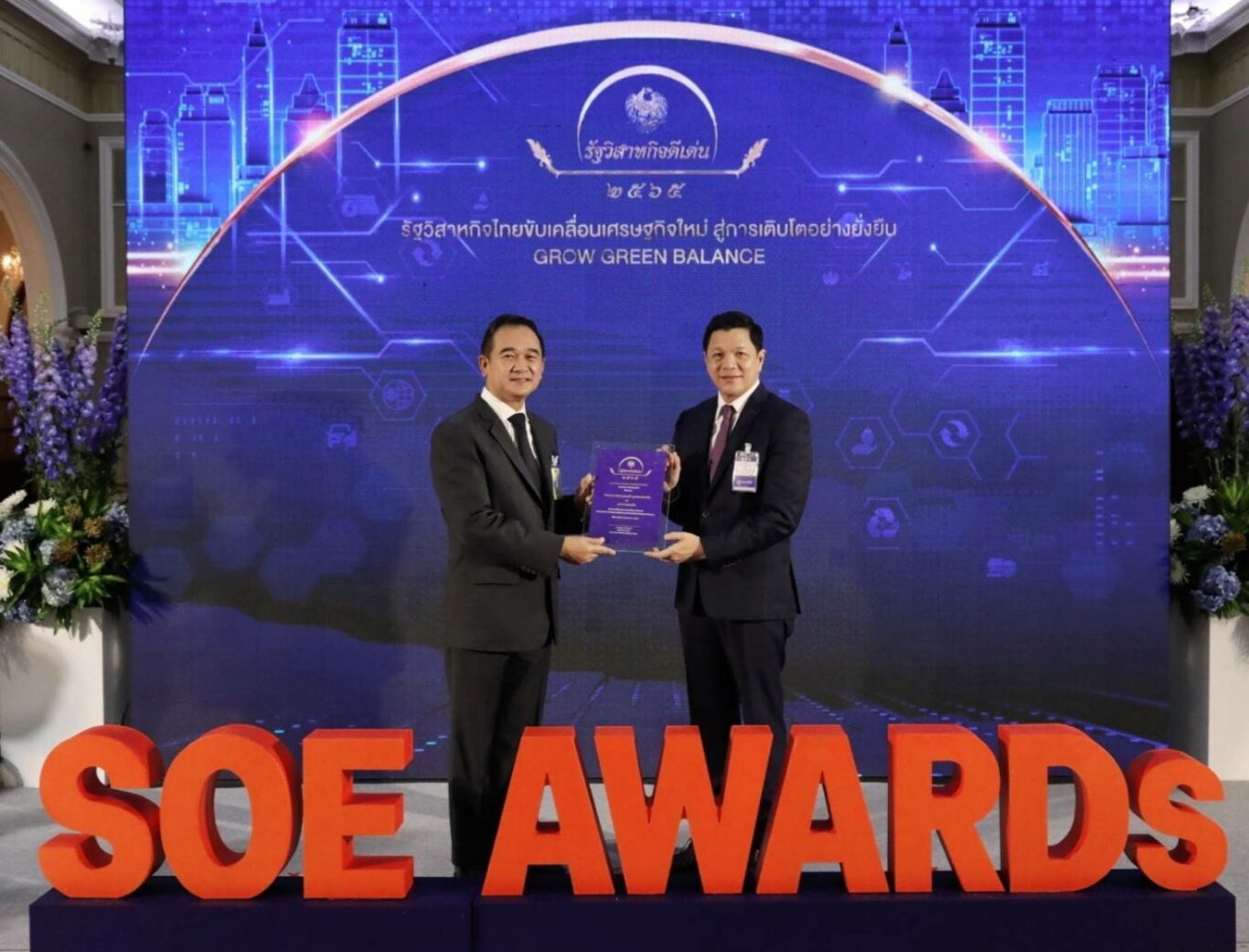 รางวัลด้านการพัฒนาสู่รัฐวิสาหกิจดิจิทัลดีเด่น ที่ธนาคารมีความโดดเด่นในการสร้างสรรค์และใช้ประโยชน์จากเทคโนโลยีดิจิทัลในการพัฒนาองค์กรในมิติต่าง ๆ รองรับการเปลี่ยนแปลงได้อย่างสะดวกรวดเร็ว