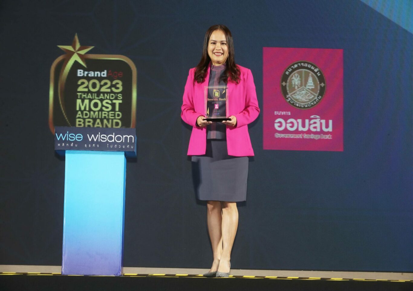นางสาววชิรา การสุทธิ์ ผู้ช่วยผู้อำนวยการธนาคารออมสิน รับรางวัลเกียรติยศ 2023 Thailand’s Most Admired Brand หมวดธนาคารและบริการทางการเงิน กลุ่มธนาคารรัฐเฉพาะกิจ โดยครองความน่าเชื่อถือและได้รับความไว้วางใจจากผู้บริโภคมากที่สุด ต่อเนื่องเป็นปีที่ 9 ในงานประกาศผลและมอบรางวัลงานวิจัย 2022-2023 Thailand’s Most Admired Company & 2023 Thailand’s Most Admired Brand ซึ่งนิตยสาร BrandAge นิตยสารด้านธุรกิจและการตลาดชั้นนำของเมืองไทยจัดขึ้น ณ โรงแรมพูลแมน คิงเพาเวอร์ เมื่อเร็วๆนี้
