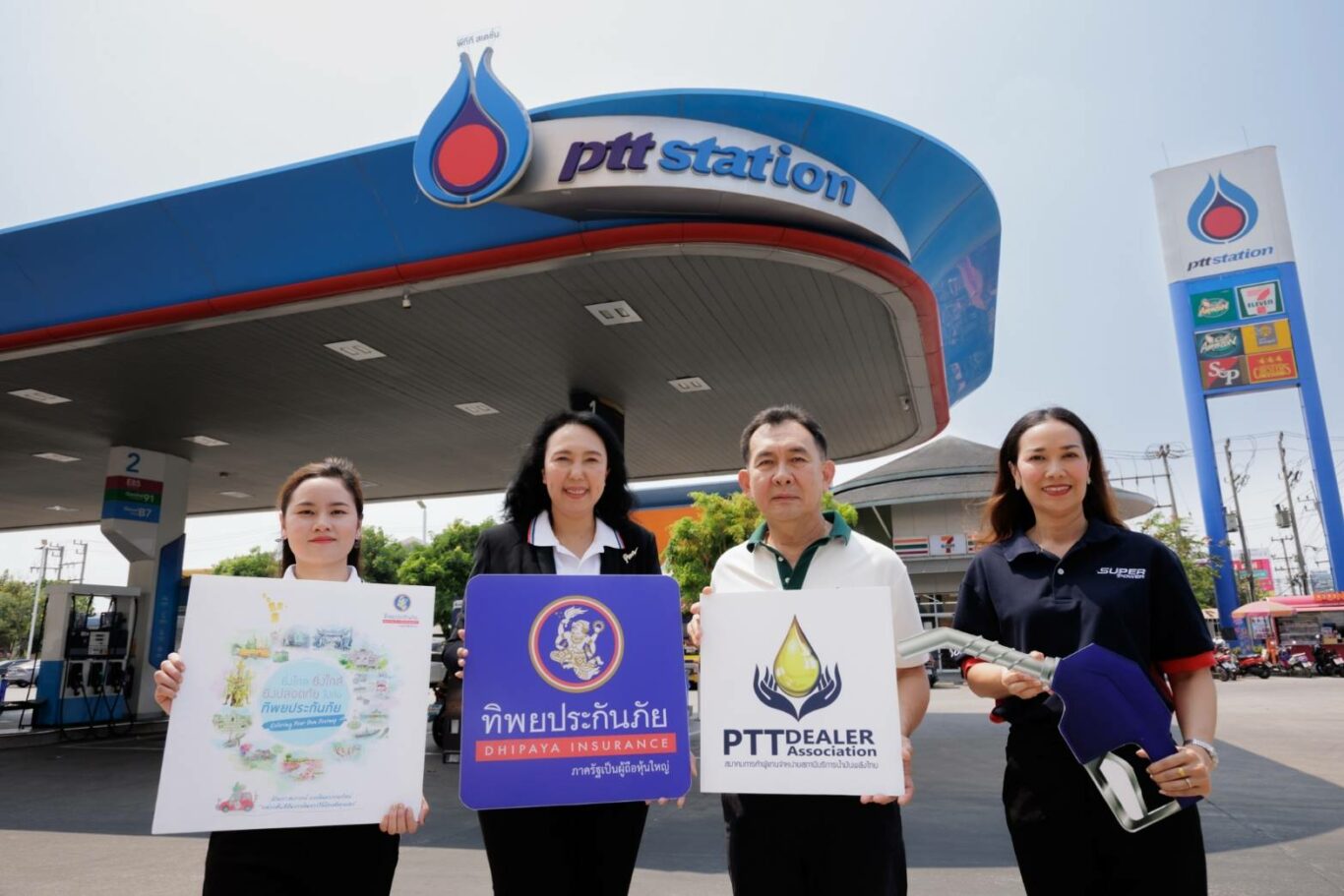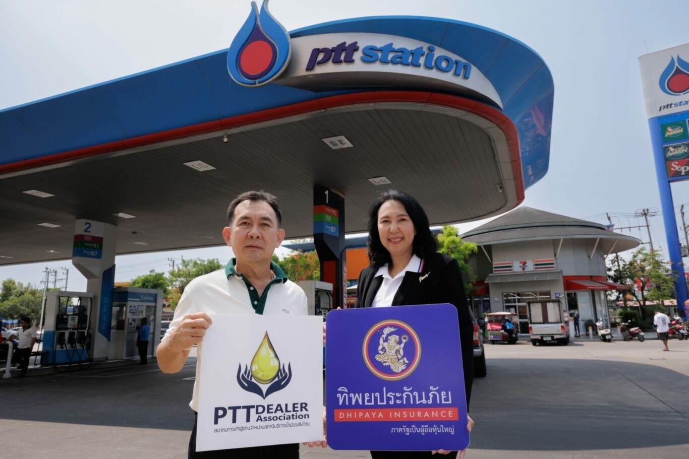 สุภาพ ประดับการ ผู้ช่วยกรรมการผู้จัดการใหญ่ สายงานกิจการสาขา บริษัท ทิพยประกันภัย จำกัด (มหาชน) ร่วมกับ พัฒนา ตั้งกิติกุล นายกสมาคมการค้าผู้แทนจำหน่ายสถานีบริการน้ำมันพลังไทย ส่งมอบความสุขและความห่วงใยให้กับลูกค้าที่มาใช้บริการ ณ พีทีที สเตชั่น ที่ร่วมรายการ บนเส้นทางสายหลักขาออกจากกรุงเทพมหานครที่จะเดินทางไปต่างจังหวัดในช่วงเทศกาลสงกรานต์นี้ จำนวน 12 สถานี รับฟรี หนังสือ “ยิ่งไกล ยิ่งใกล้ ยิ่งปลอดภัย ไปกับทิพยประกันภัย” แนะนำสถานที่ท่องเที่ยวทั่วไทยที่น่าสนใจ