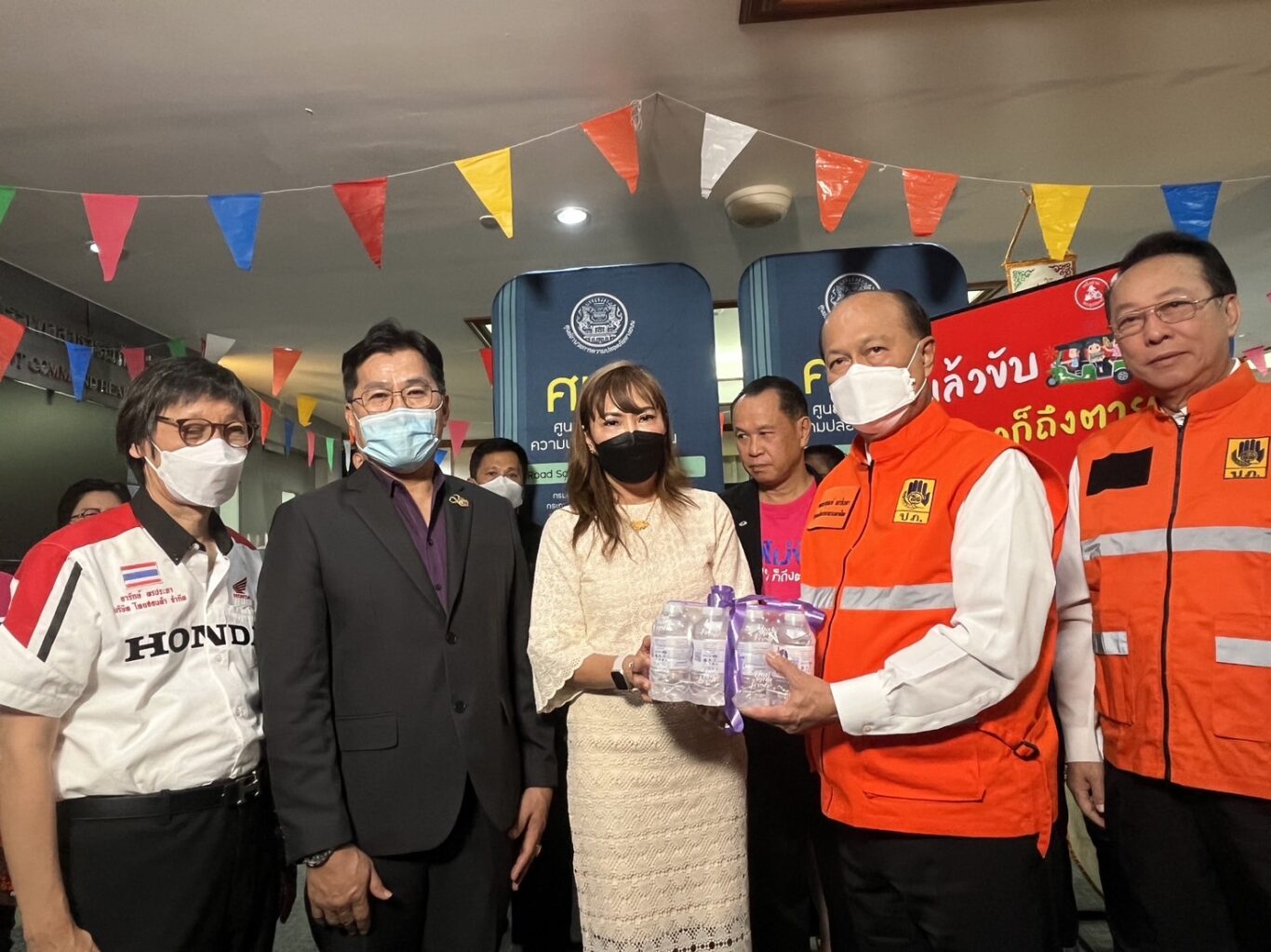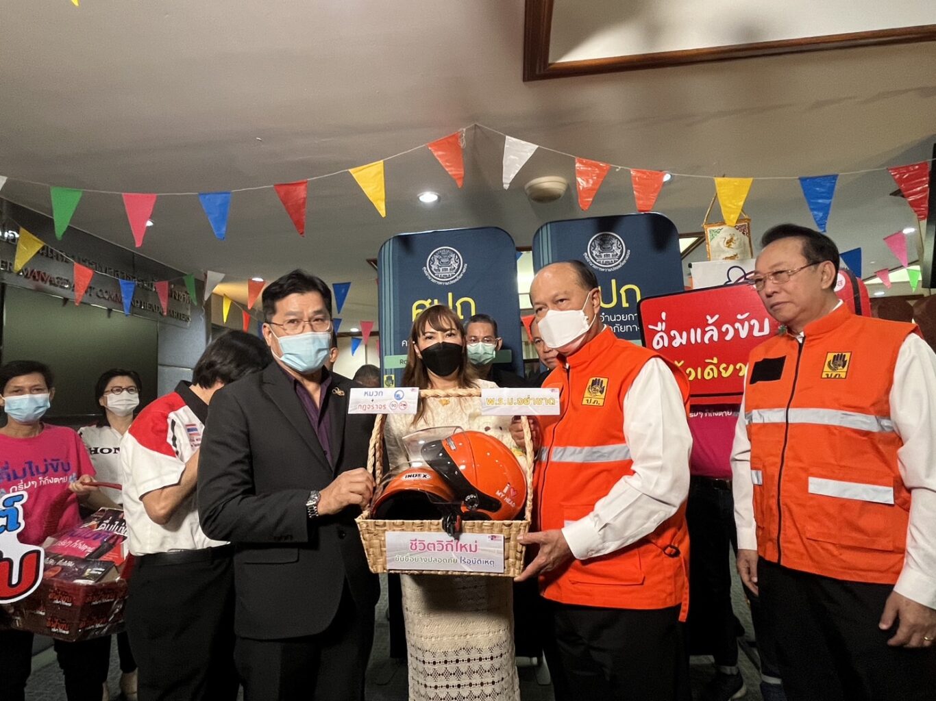 พลเอก อนุพงษ์ เผ่าจินดา รัฐมนตรีว่าการกระทรวงมหาดไทย ประธานพิธีเปิดศูนย์อำนวยการป้องกันและลดอุบัติเหตุทางถนนช่วงเทศกาลสงกรานต์ พ.ศ.2566 รับมอบหมวกนิรภัยและของรณรงค์ป้องกันและลดอุบัติเหตุทางถนนจาก นายประสิทธิ์ คำเกิด รองกรรมการผู้จัดการ บริษัท กลางคุ้มครองผู้ประสบภัยจากรถ จำกัด เพื่อนำไปใช้ในการรณรงค์ความปลอดภัยทางถนน “ชีวิตวิถีใหม่ ขับขี่อย่างปลอดภัย ไร้อุบัติเหตุ” ในช่วงเทศกาลสงกรานต์ ณ ห้องประชุม 1 กรมป้องกันและบรรเทาสาธารณภัย กรุงเทพมหานคร
