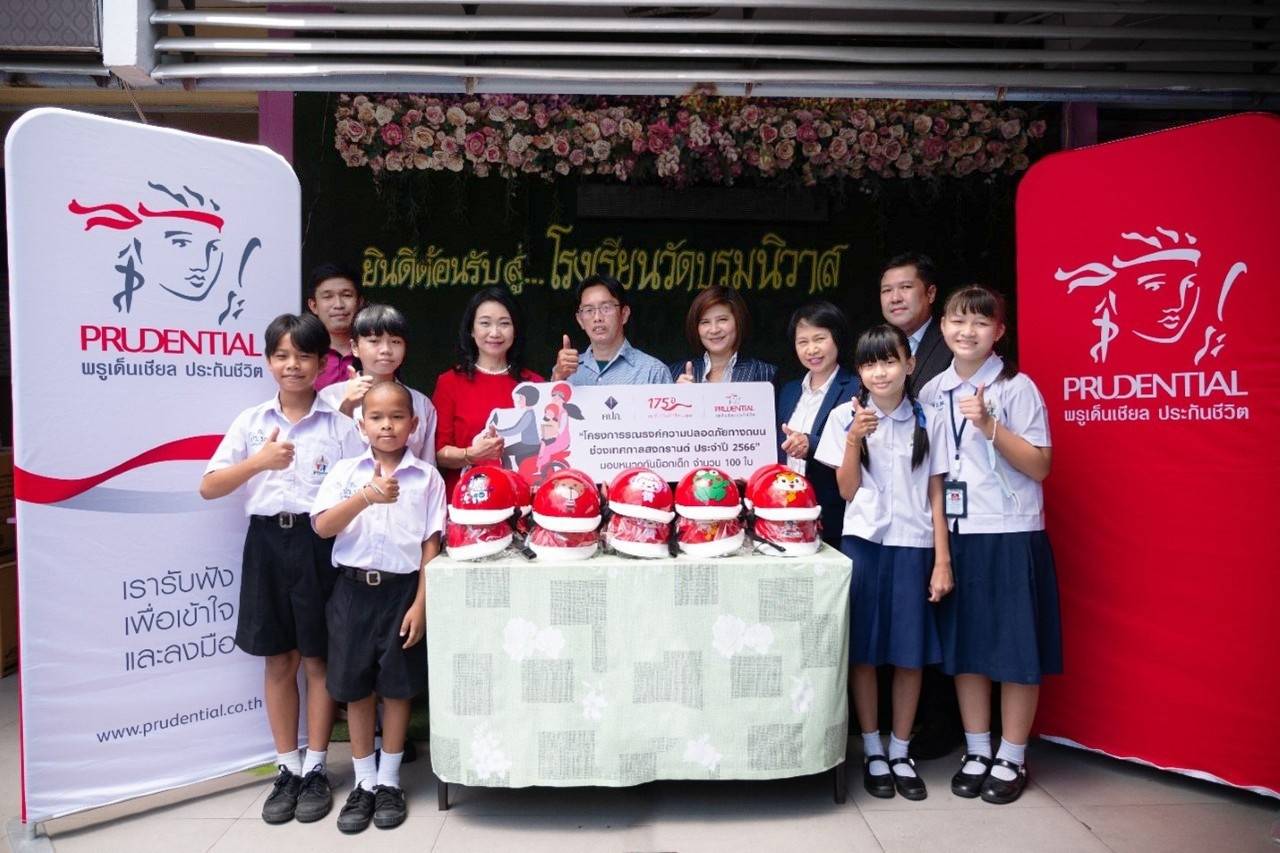 นางสายพิณ โชคนำกิจ ประธานเจ้าหน้าที่บริหาร สายงานรัฐกิจสัมพันธ์ พรูเด็นเชียล ประเทศไทย หนึ่งในผู้นำธุรกิจประกันชีวิต เป็นผู้แทนบริษัทฯ มอบหมวกนิรภัยจำนวน 100 ใบ ให้กับโรงเรียนวัดบรมนิวาส และโรงเรียนวัดชัยมงคล เพื่อสนับสนุนกิจกรรมรณรงค์ลดอุบัติเหตุทางถนน และสร้างความตระหนักเรื่องความปลอดภัยบนท้องถนนให้แก่น้องๆเด็กนักเรียน ในโครงการรณรงค์ความปลอดภัยทางถนนในช่วงเทศกาลสงกรานต์ ประจำปี 2566 ซึ่งจัดโดย สำนักงานคณะกรรมการกำกับและส่งเสริมการประกอบธุรกิจประกันภัย (คปภ.)