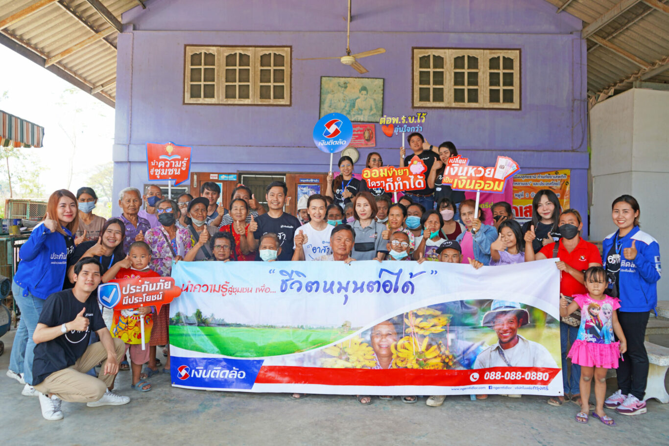 บริษัท เงินติดล้อ จำกัด (มหาชน) โดย นางสาวนิภา วนิชวัฒน์ (ที่ 7 จากซ้าย แถวกลาง) ผู้บริหารระดับสูง สายงานกิจกรรมเพื่อสังคม และ นายมิ่งขวัญ ประเสริฐศิวพร (ที่ 6 จากซ้าย แถวกลาง) ผู้ช่วยผู้จัดการงานส่งเสริมการเรียนรู้ด้านการเงิน พร้อมทีมงานอาสาชาวเงินติดล้อ ร่วมจัดกิจกรรมในโครงการ “นำความรู้สู่ชุมชน เพื่อชีวิตหมุนต่อได้” ในหลักสูตร ออมเงินง่ายๆ ที่ใครๆ ก็ทำได้ ให้แก่ชาวบ้านในพื้นที่ชุมชนบ้านปากกะบาด จ.อุทัยธานี จำนวนกว่า 40 คน