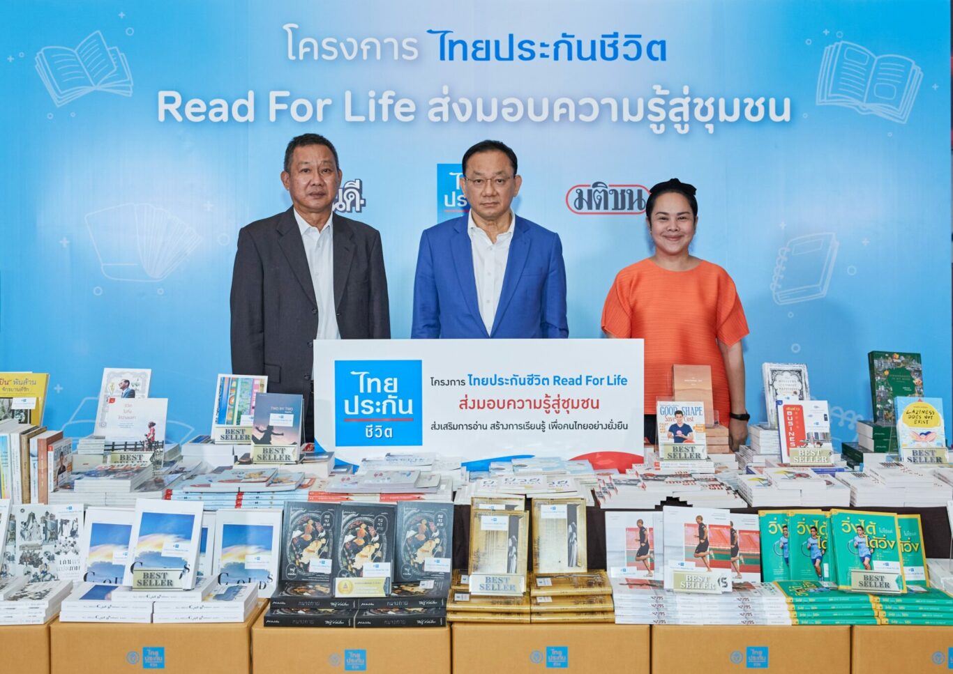 นายไชย ไชยวรรณ กรรมการและประธานเจ้าหน้าที่บริหาร บริษัท ไทยประกันชีวิต จำกัด (มหาชน) รับมอบพ็อกเก็ตบุ๊กสำนักพิมพ์มติชน จาก นางสาวปานบัว บุนปาน กรรมการผู้จัดการ บริษัท มติชน จํากัด (มหาชน) และ นายชลิต กิติญาณทรัพย์ ประธานที่ปรึกษา บริษัท งานดี จำกัด เพื่อนำไปใช้ประโยชน์ตามโครงการ “ไทยประกันชีวิต Read For Life ส่งมอบความรู้สู่ชุมชน” ปี 2566 โดยไทยประกันชีวิตจัดซื้อพ็อกเก็ตบุ๊ค รวมมูลค่า 800,000 บาท เพื่อนำไปมอบให้แก่ชุมชนในพื้นที่ใกล้เคียงสาขา 60 แห่งทั่วประเทศ ณ อาคารมติชน