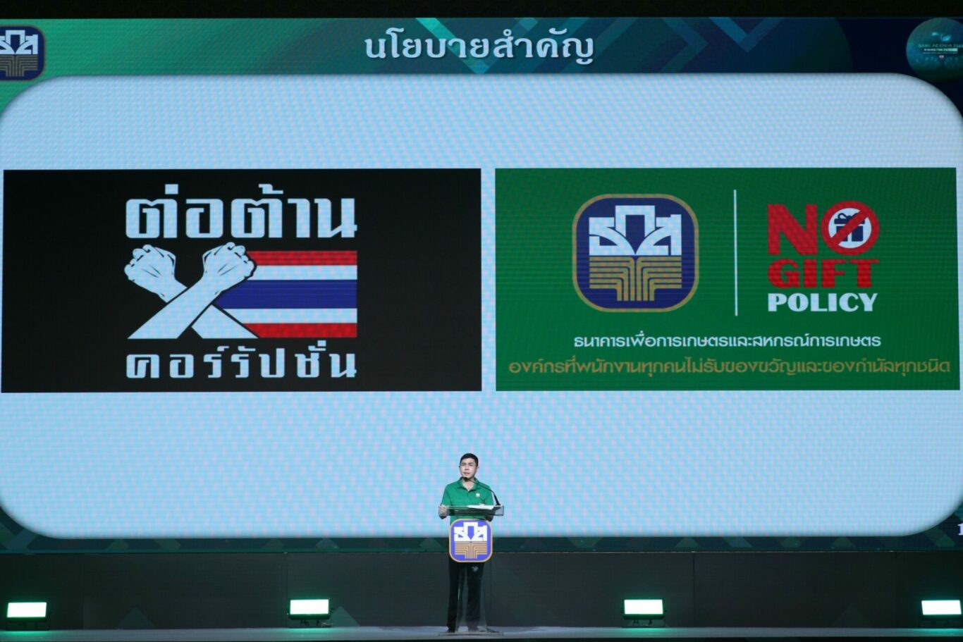 รวมถึงการประกาศนโยบายต่อต้านคอร์รัปชันและ NO Gift Policy ในการดำเนินงานของ ธ.ก.ส. เพื่อนำไปสู่การปฏิบัติงานอย่างมีประสิทธิภาพมากขึ้น