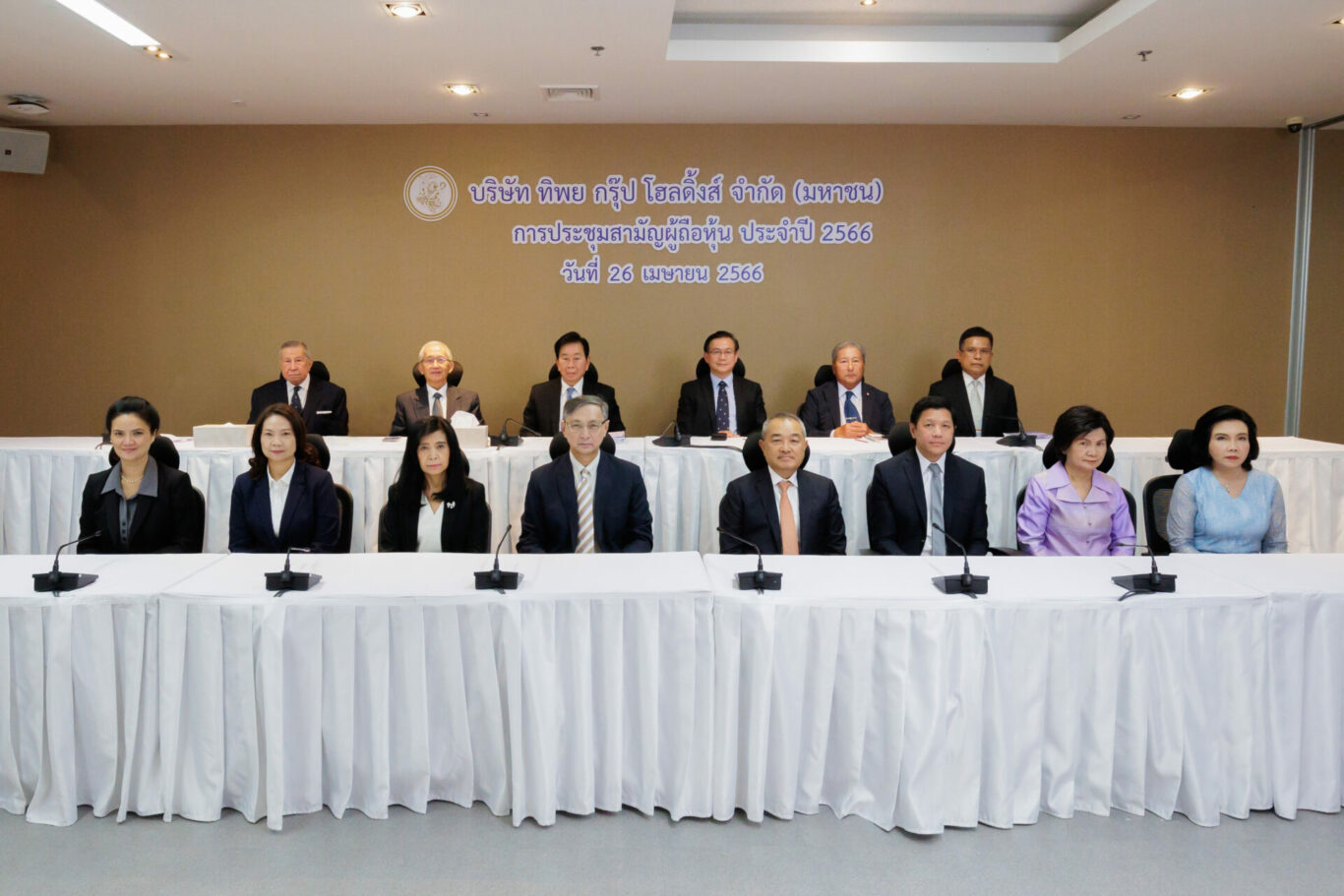 นายสมใจนึก เองตระกูล ประธานกรรมการ พร้อมด้วยคณะกรรมการบริษัทและและผู้บริหารระดับสูงของ บริษัท ทิพย กรุ๊ป โฮลดิ้งส์ จำกัด (มหาชน) หรือ TIPH แถลงผลการดำเนินงาน ในรอบปีที่ผ่านมาในการประชุมสามัญผู้ถือหุ้นประจำปี 2566 ผ่านระบบออนไลน์ (E-AGM) ณ ห้องประชุม บริษัท ทิพยประกันภัย จำกัด (มหาชน) อาคารสำนักงานใหญ่ โดยผู้ถือหุ้นมีมติอนุมัติจ่ายเงินปันผลประจำปี 2565 ในอัตราหุ้นละ 2.55 บาท รวมเป็นเงิน 1,515.45 ล้านบาท คิดเป็น 88.38% ของกำไรสุทธิ (งบเฉพาะกิจการ)
