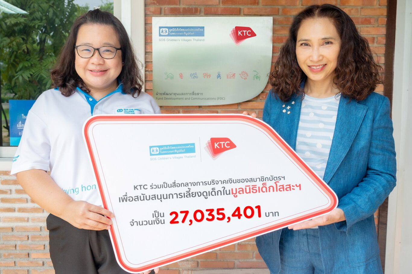 นางสาวสิรีรัตน์ คอวนิช (กลางขวา) ผู้บริหารสูงสุด ฝ่ายการตลาดบัตรเครดิต “เคทีซี” หรือ บริษัท บัตรกรุงไทย จำกัด (มหาชน) เป็นตัวแทนมอบเงินจำนวน 27,035,401 บาท ให้กับ นางสาวจันทิรา สมบุญเกิด (กลางซ้าย) รองผู้อำนวยการใหญ่และผู้อำนวยการฝ่ายพัฒนาทุนและการสื่อสาร มูลนิธิเด็กโสสะแห่งประเทศไทย ในพระบรมราชินูปถัมภ์ ซึ่งสมาชิกเคทีซีร่วมกันบริจาคผ่านบัตรเครดิต และใช้คะแนน KTC FOREVER ทุก 1,000 คะแนน แทนเงินบริจาค 100 บาท สมทบทุนช่วยเหลือมูลนิธิ เมื่อเร็วๆ นี้