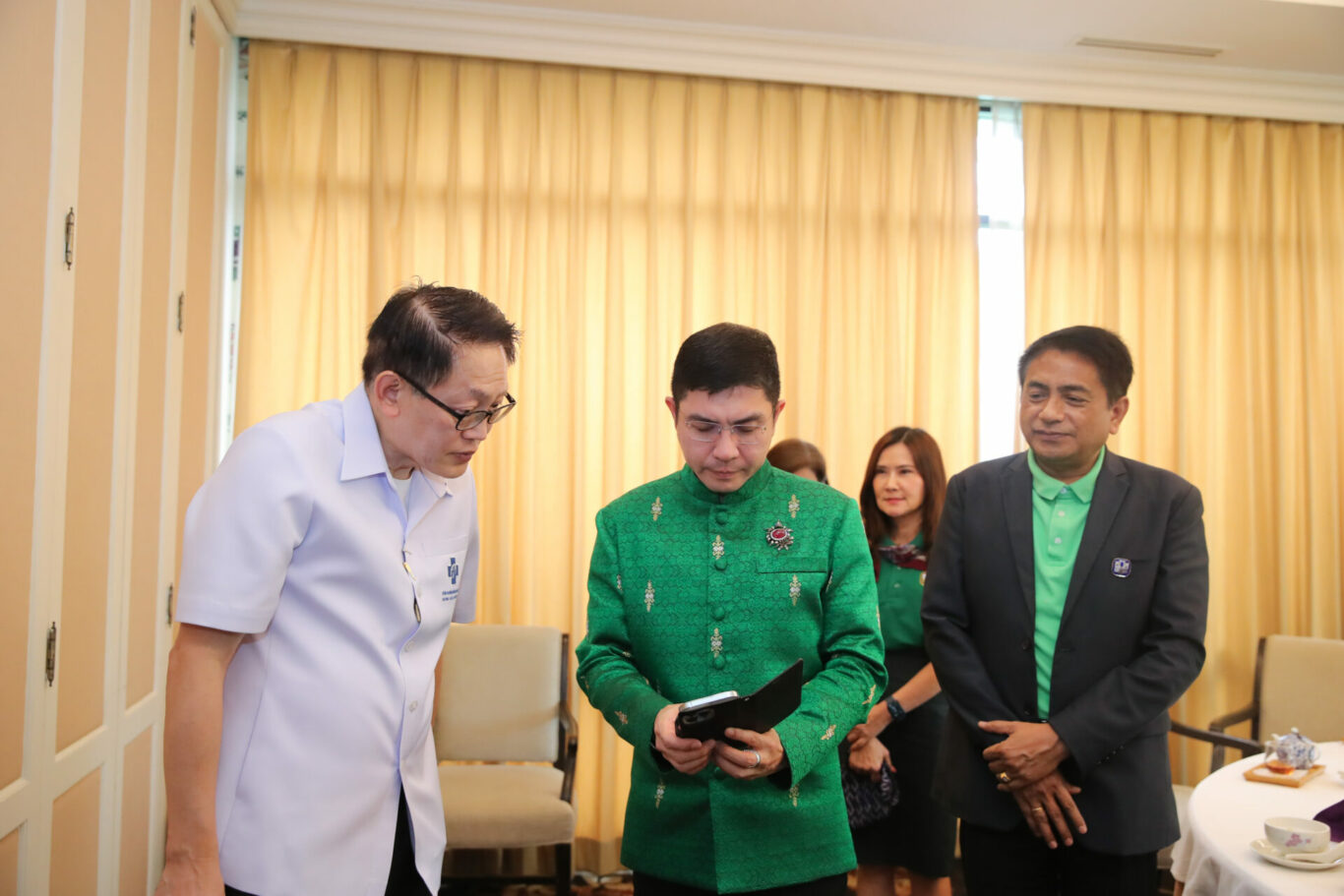 นายฉัตรชัย ศิริไล ผู้จัดการธนาคารเพื่อการเกษตรและสหกรณ์การเกษตร (ธ.ก.ส.) ร่วมพบปะแลกเปลี่ยนความคิดเห็นและหารือกับ นพ.จเด็จ ธรรมธัชอารี เลขาธิการสำนักงานหลักประกันสุขภาพแห่งชาติ (สปสช.) และ ทพ.อรรถพร ลิ้มปัญญาเลิศ รองเลขาธิการสปสช. ถึงแนวทางการดำเนินงานร่วมกับ สปสช. เพื่อสนับสนุนการขับเคลื่อนงานและอำนวยความสะดวกให้กับสปสช. ในการดูแลเกษตรกรและประชาชนในชนบท ได้แก่ การเพิ่มประสิทธิภาพการให้บริการทางการเงินที่สะดวกและรวดเร็ว ทั้งบริการฝากเงินและบริการโอนเงินไปยังโรงพยาบาล ต่าง ๆ เพื่อเป็นค่าใช้จ่ายในการดำเนินงาน เป็นต้น โดยมี นายพงษ์พันธ์ จงรักษ์ รองผู้จัดการ ธ.ก.ส. และ นายมานพ จินาไหม ผู้ช่วยผู้จัดการ ธ.ก.ส. เข้าร่วม เมื่อวันที่ 26 เมษายน 2566