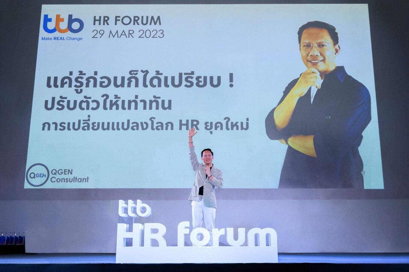 กรุงเทพฯ 20 เมษายน 2566 — เก็บตกจากงาน HR Forum ที่ทีเอ็มบีธนชาตจัดขึ้นให้กับทีม HR ของบริษัทพันธมิตรที่ใช้บัญชีเงินเดือนของธนาคาร เพื่อเปิดมุมมองใหม่ ๆ ในยุคที่โลกเปลี่ยนแปลงไปอย่างรวดเร็ว ได้อัปเดตเทรนด์ความรู้และประสบการณ์ดี ๆ ที่น่าสนใจในการบริหารจัดการพนักงานให้มีความสุขและมีชีวิตทางการเงินที่ดีขึ้น เพื่อจะได้ส่งผลต่อ Productivity ในการทำงาน โดยในงานดังกล่าว ได้รับเกียรติจาก นายอภิชาต ขันธวิธี กูรูคนดังในแวดวง HR ปัจจุบัน เป็น CEO, QGEN Consultant และผู้ก่อตั้งแฟนเพจ HR The Next Gen มาร่วมอัปเดตเทรนด์ เพื่อเสริมเขี้ยวเล็บและความรอบรู้ให้กับเหล่า HR ที่มาร่วมงาน เพื่อให้ทันกับความท้าทายและการเปลี่ยนแปลงที่เกิดขึ้นในปัจจุบัน พร้อมเสริมกลยุทธ์การบริหารจัดการด้าน HR เพื่อนำไปพัฒนาองค์กรได้อย่างยั่งยืน