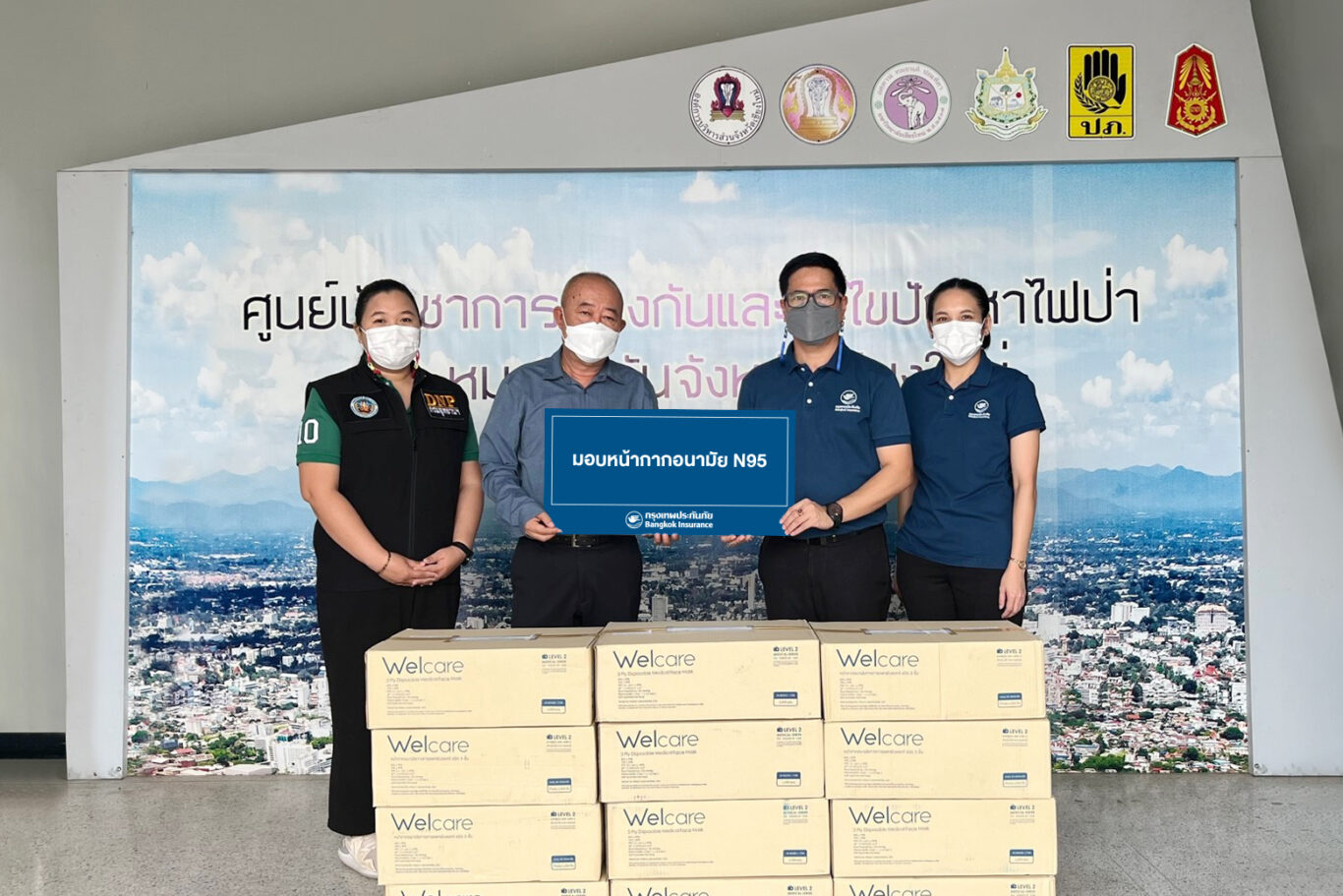 บริษัท กรุงเทพประกันภัย จำกัด (มหาชน) หรือ BKI โดยนายจตุพล คำวงศ์ ผู้จัดการสาขาเชียงราย ธุรกิจสาขาและการร่วมทุน เป็นผู้แทนบริษัทฯ มอบหน้ากากอนามัย N95 จำนวน 5,000 ชิ้น ให้แก่ศูนย์บัญชาการป้องกันและแก้ไขปัญหาไฟป่าและหมอกควัน จังหวัดเชียงราย โดยมี พันเอกพักตร์พงษ์ เงสันเที๊ยะ หัวหน้ากลุ่มงานนโยบายแผนและการข่าว กองอำนวยการรักษาความมั่นคงภายในจังหวัดเชียงราย และนางชญานิศ ยอดบุญลือ ผู้ช่วยหัวหน้าสำนักงานป้องกันและบรรเทาสาธารณภัยจังหวัดเชียงราย เป็นผู้แทนรับมอบ ณ ศาลากลางจังหวัดเชียงราย เมื่อวันที่ 26 เมษายน 2566