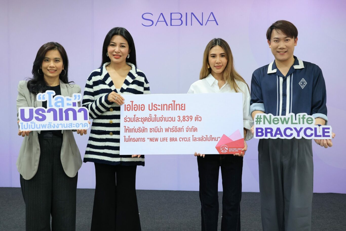 กรุงเทพฯ, 10 พฤษภาคม 2566 – เอไอเอ ประเทศไทย นำโดย นางสาวรพีพร วงศ์ทองคำ (ที่ 2 จากซ้าย) ผู้อำนวยการฝ่ายสื่อสารองค์กรและภาพลักษณ์ เป็นตัวแทนส่งมอบชุดชั้นใน แก่ ซาบีน่า โดยมี นางสาวพิชชา ธนาลงกรณ์ (ที่ 2 จากขวา) ประธานเจ้าหน้าที่บริหารการตลาด บริษัท ซาบีน่า ฟาร์อีสท์ จำกัด เป็นตัวแทนรับมอบ เพื่อนำชุดชั้นในเสื่อมสภาพเข้าสู่กระบวนการกำจัดอย่างถูกวิธี ภายใต้โครงการ “โละแล้วไปไหน (New Life Bra Cycle)” ด้วยกระบวนการเผาทำลายผ่านระบบปิด ไม่ก่อให้เกิดมลภาวะเป็นพิษต่อสิ่งแวดล้อม ลดปัญหามลพิษ PM2.5 และยังสามารถนำพลังงานความร้อนที่ได้แปรเปลี่ยนไปเป็นพลังงานสะอาดทดแทนการใช้ถ่านหิน เพื่อสิ่งแวดล้อมที่ดีอย่างยั่งยืน สอดคล้องตามคำมั่นสัญญาของเอไอเอ ‘Healthier, Longer, Better Lives – เพื่อสุขภาพและชีวิตที่ดีขึ้น’