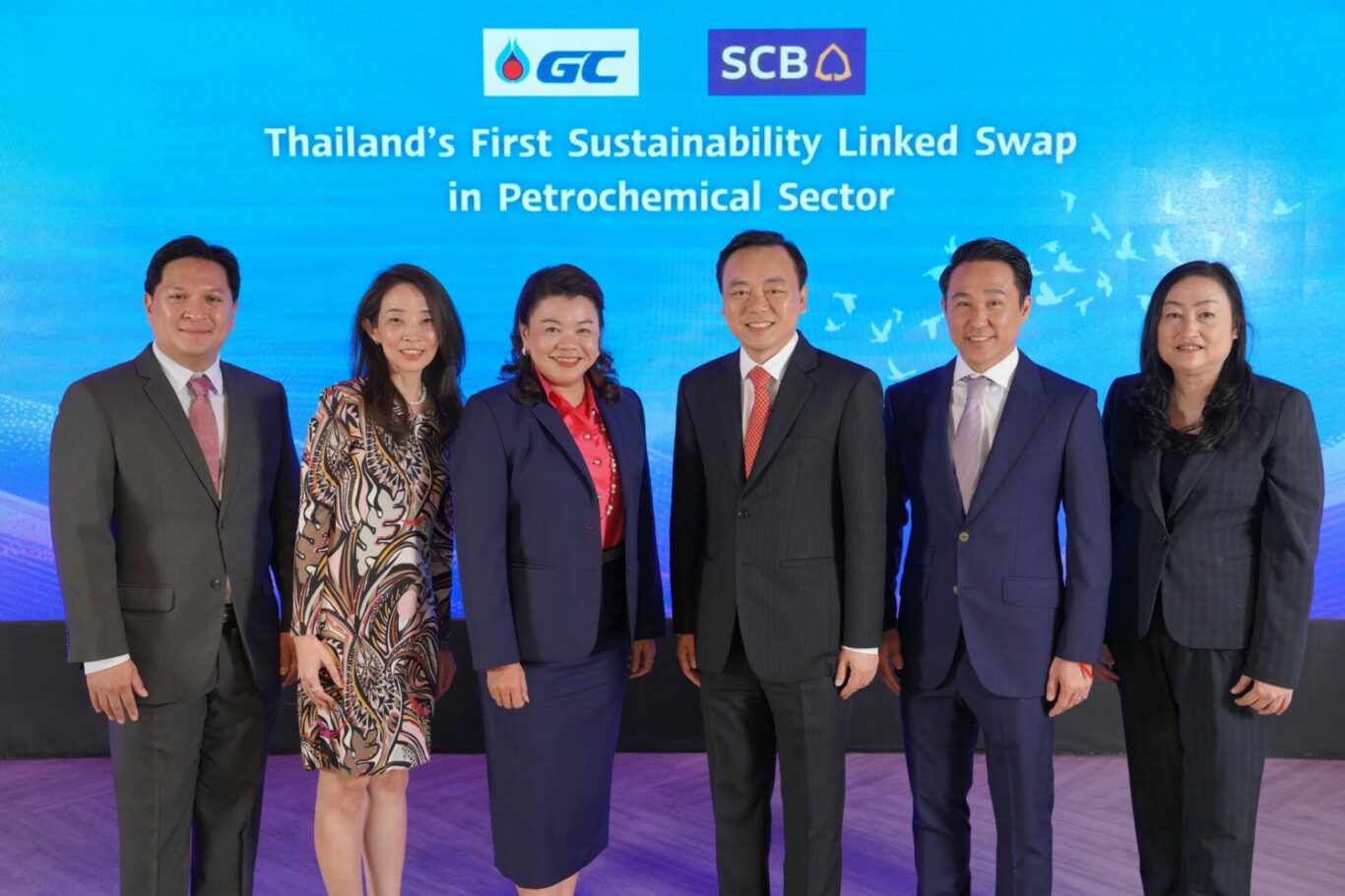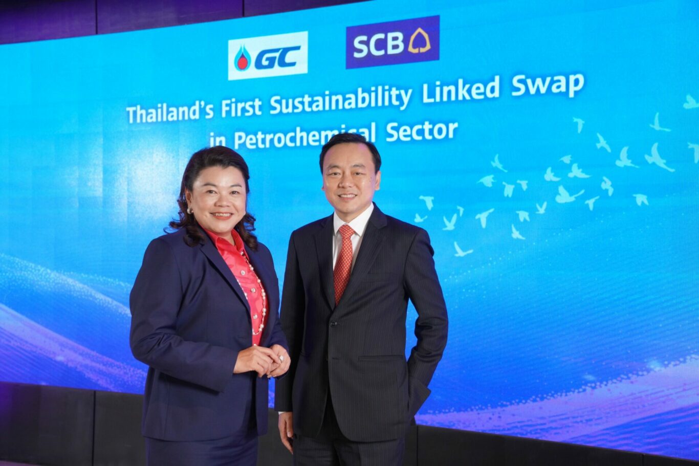 ธนาคารไทยพาณิชย์ หรือ SCB และ บริษัท พีทีที โกลบอล เคมิคอล จำกัด (มหาชน) หรือ GC ร่วมตอกย้ำความมุ่งมั่นในการดำเนินงานด้านความยั่งยืนอย่างต่อเนื่อง ยกระดับขีดความสามารถทางด้านการเงินยั่งยืน ร่วมลงนามใน “สัญญาอนุพันธ์ป้องกันความเสี่ยงทางการเงินที่เชื่อมโยงกับผลการดำเนินงานด้านความยั่งยืน หรือ Sustainability Linked Swap” เป็นครั้งแรกในอุตสาหกรรมปิโตรเคมีของประเทศไทย โดยจะนำผลการดำเนินงานของ GC ในการมีส่วนร่วมในด้านการสร้างสมดุลระหว่างสิ่งแวดล้อม สังคมและเศรษฐกิจ และบรรษัทภิบาล (ESG) มาเป็นเกณฑ์เพื่อพิจารณาปรับอัตราดอกเบี้ยในธุรกรรมนี้ ทั้งนี้ ยังเป็นการต่อยอดการให้บริการการเงินยั่งยืนอย่างครบวงจรต่อเนื่องจากความสำเร็จของสัญญาการสนับสนุนสินเชื่อที่เชื่อมโยงกับการดำเนินงานด้านความยั่งยืน (Sustainability-Linked Loan: SLL) เมื่อเดือนธันวาคม 2565