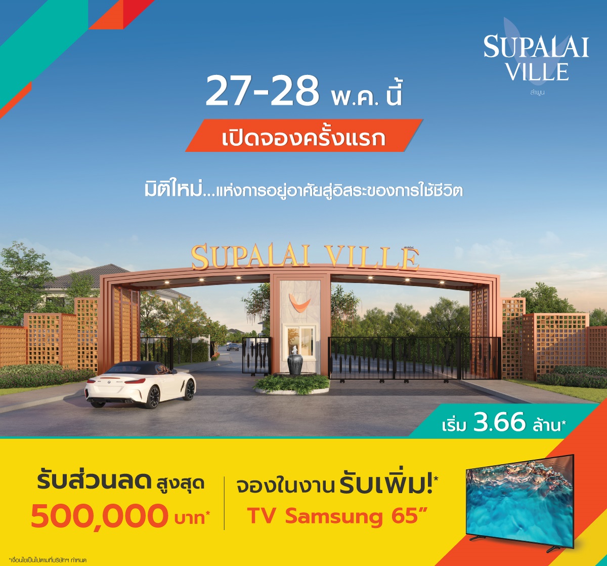 พบมิติใหม่แห่งการอยู่อาศัยได้แล้วที่โครงการ ศุภาลัย วิลล์ ลำพูน เปิดจองครั้งแรก 27 – 28 พฤษภาคมนี้ พิเศษ! จองภายในวันงาน รับ TV Samsung 65 นิ้ว พร้อมรับส่วนลดสูงสุด 500,000 บาท*