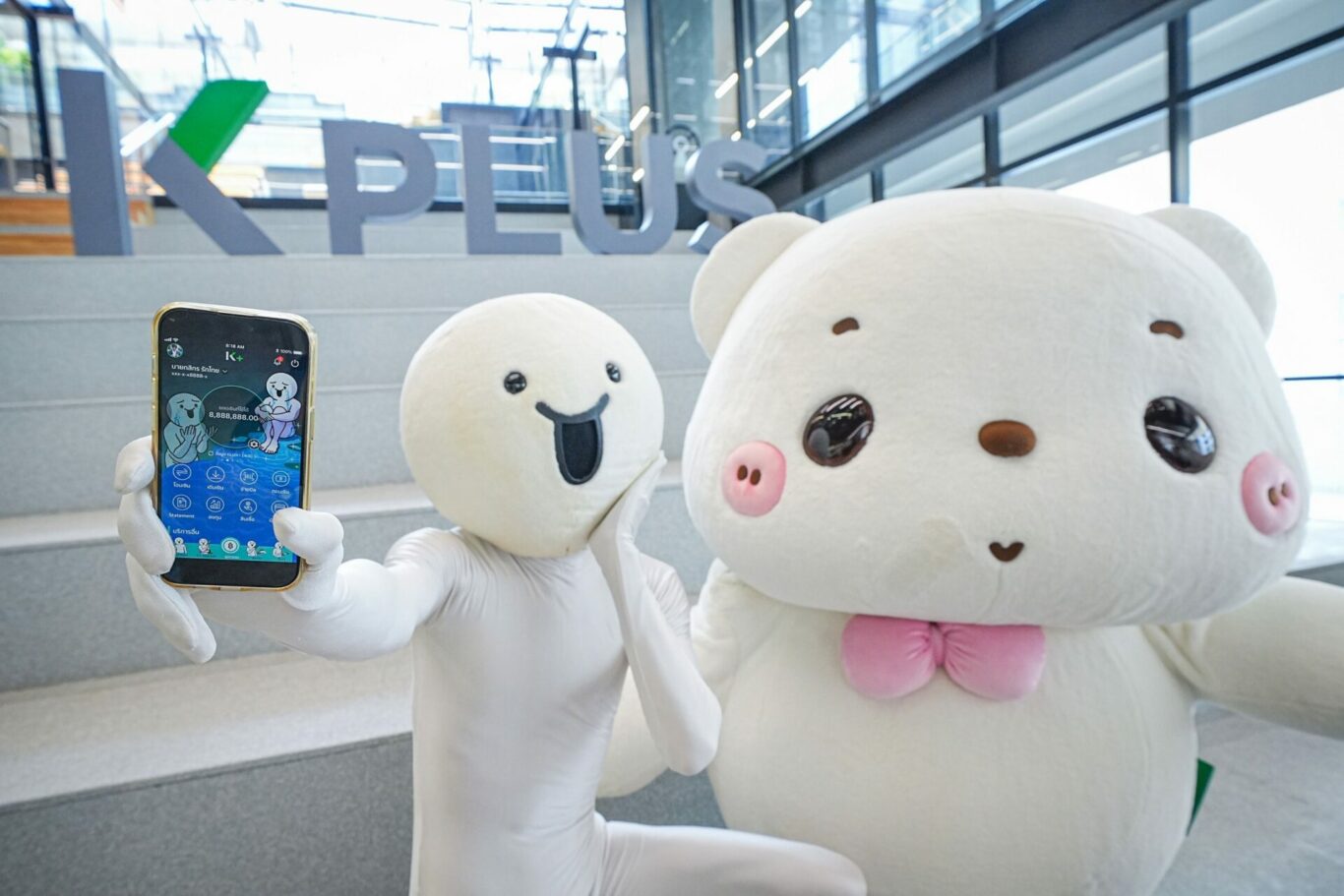 นายสุปรีชา ลิมปิกาญจนโกวิท ผู้ช่วยกรรมการผู้จัดการ ธนาคารกสิกรไทย และ นางสาวอิสรี ดำรงพิทักษ์กุล ผู้อำนวยการฝ่ายธุรกิจ Consumer Business จาก LINE ประเทศไทย ร่วมเปิดตัวธีม K PLUS คอลเลคชันใหม่ “K PLUS x LINE CREATORS” เติมสีสันให้การใช้งาน K PLUS สนุกยิ่งขึ้นด้วยธีมและ e-Slip ที่เป็นลายเส้นคาแรคเตอร์ สร้างสรรค์โดย 8 ท็อปครีเอเตอร์จาก LINE CREATORS ที่มีผลงานเป็นที่ชื่นชอบของคนไทย ได้แก่ Dueb Dueb, HyperRabbit, Thao Wessuwan, Chonni, Som O, minimal G, BearPlease และ Onnie Bear