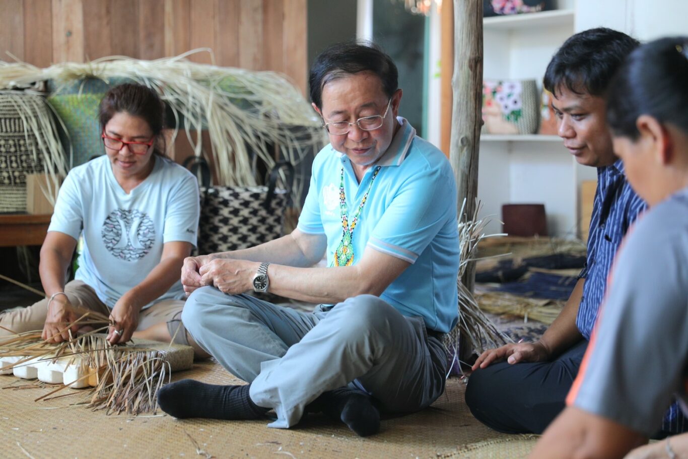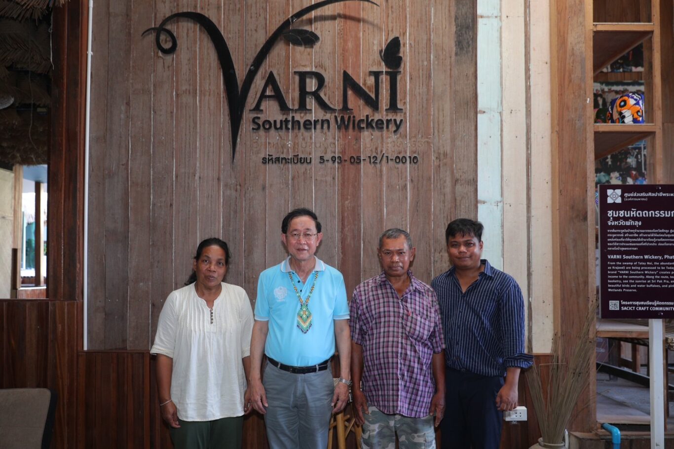 จากนั้นเดินทางไปเยี่ยมชมงานวิสาหกิจชุมชนกระจูดวรรณี ภายใต้การนำของนายมนัทพงศ์ เซ่งฮวด ที่สานต่อธุรกิจการสานกระจูดต่อจากรุ่นพ่อแม่ ซึ่งกระจูดเป็นของที่ระลึกที่มีชื่อเสียงของภาคใต้ โดยมีการปรับดีไซน์และพัฒนาการย้อมสีธรรมชาติให้มีความร่วมสมัย จึงได้รับรางวัลด้านดีไซน์มากมาย และส่งผลิตภัณฑ์ออกจำหน่ายได้ทั้งในและต่างประเทศ