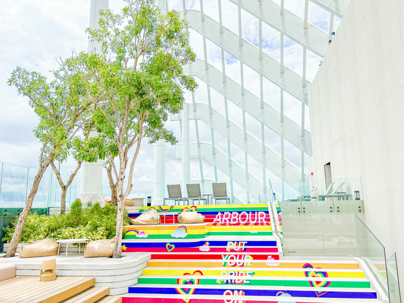 นางสาวศศิมา พานิชวิบูลย์ หัวหน้าฝ่ายการตลาด กลุ่มโรงแรมในเครือแอทมายด์ กรุ๊ป กล่าวว่า “สำหรับอาร์เบอร์ โฮเทล แอนด์ เรสซิเดนซ์ ได้ออกแคมเปญภายใต้คอนเซ็ปท์ “ARBOUR PUT YOUR PRIDE ON” โดยเน้น 3 ส่วน คือ “ลูกค้า” โรงแรมพยายามสร้างประสบการณ์ให้แขกที่เข้าพักสามารถแสดงความเป็นตัวตนหรือจุดยืนได้อย่างไร้ขีดจำกัด ส่วนที่สองคือ “Product Design” ห้องพักถูกออกแบบให้มีความสะดวกสบายครบครัน โครงสร้างที่โดดเด่นของโรงแรมก็เป็นอีกหนึ่งแลนด์มาร์คในพัทยาที่ทุกคนต้องมาแวะถ่ายภาพ ยิ่งไปกว่านั้นโรงแรมยังได้ออกแบบและตกแต่งเฉพาะสำหรับเดือน PRIDE MONTH ด้วยการนำเอา Theme PUT YOUR PRIDE ON มาผสมผสานเติมเต็มในทุกๆ Touch Point ของโรงแรม ไม่ว่าจะเป็นมุมถ่ายรูปไฮไลท์อย่างบันไดสีรุ้งบน Rooftop ชั้นที่ 24 ขนมและเครื่องดื่มในธีม PRIDE ซอง KEYCARD และอื่นๆ อีกมากมาย ส่วนสุดท้ายคือ “Partnership” ไม่ว่าจะเป็นศูนย์การค้าเซ็นทรัล ภาครัฐ รวมถึงภาคเอกชนก็ตามที่ช่วยกันผลักดันทำให้พัทยาเป็นหนึ่งในเมืองสำหรับกลุ่ม LGBTQ+ เลือกที่จะเดินทางมาพัทยาเป็นอันดับต้นๆ ของประเทศ และโดยเฉพาะ “บัตรเครดิตเคทีซี” ที่ทางโรงแรมมั่นใจและเลือกที่จับมือสร้างสรรค์แคมเปญ PUT YOUR PRIDE ON ขึ้นมาด้วยกันในปีนี้ สำหรับผลตอบรับในแคมเปญหวังว่าลูกค้าทุกคน ทุกกลุ่ม จะเข้ามาใช้บริการที่โรงแรมมากขึ้นเพราะ “Pride is for everyone” ค่ะ”
