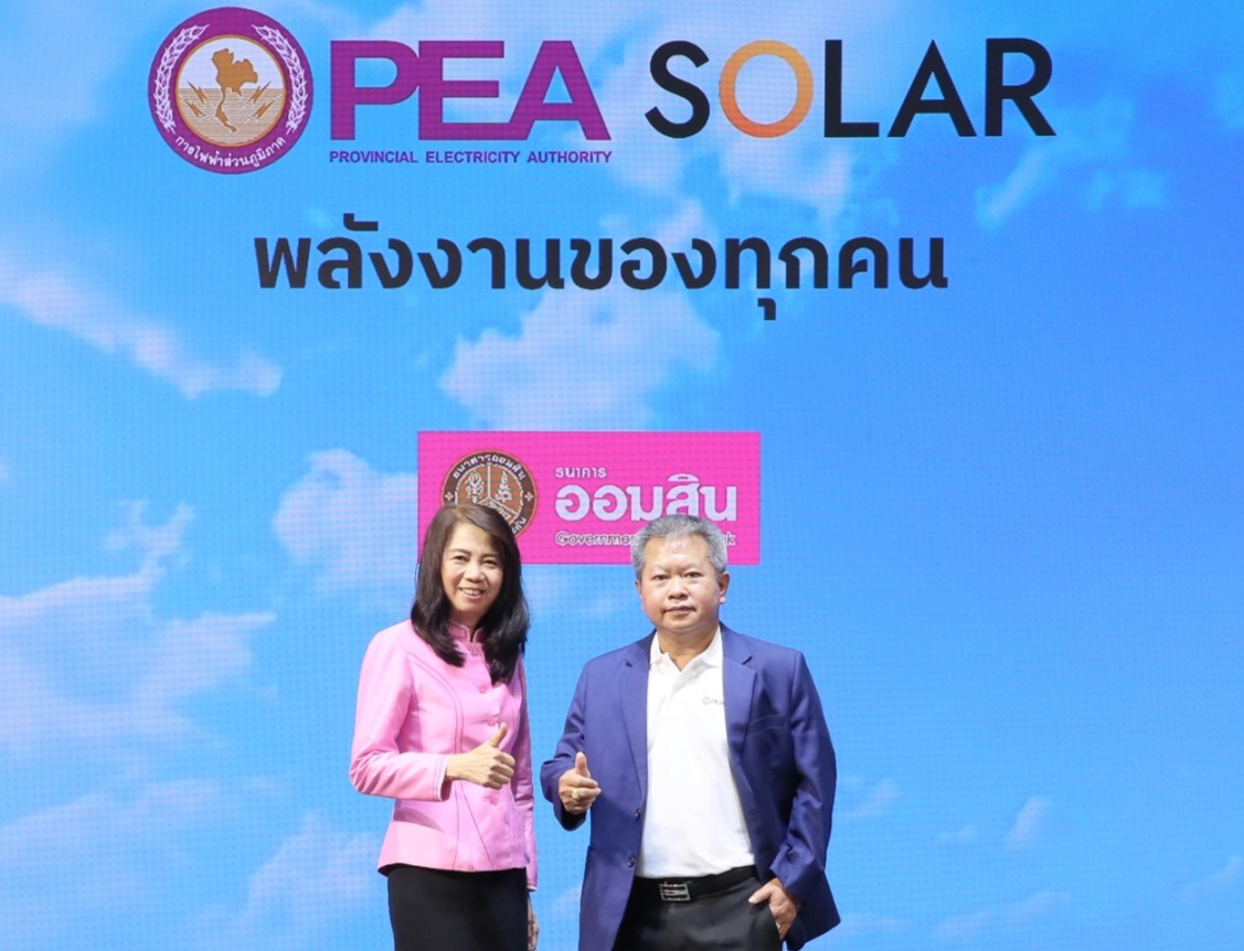โดยธนาคารออมสิน ได้ร่วมลงนามบันทึกข้อตกลงความร่วมมือในการจัดหาแหล่งเงินทุนให้กับลูกค้าสำหรับงานให้บริการธุรกิจ PEA SOLAR เพื่อช่วยเหลือสนับสนุนลูกค้าบ้านอยู่อาศัยและผู้ประกอบการ ให้เข้าถึงแหล่งเงินทุนในการติดตั้งและบำรุงรักษาระบบการผลิตไฟฟ้าจากพลังงานแสงอาทิตย์ รวมถึงช่วยลดต้นทุนค่าไฟฟ้า ลดการปล่อยก๊าซเรือนกระจก และกระตุ้นการใช้พลังงานหมุนเวียนเพื่อสร้างความมั่นคงด้านพลังงาน