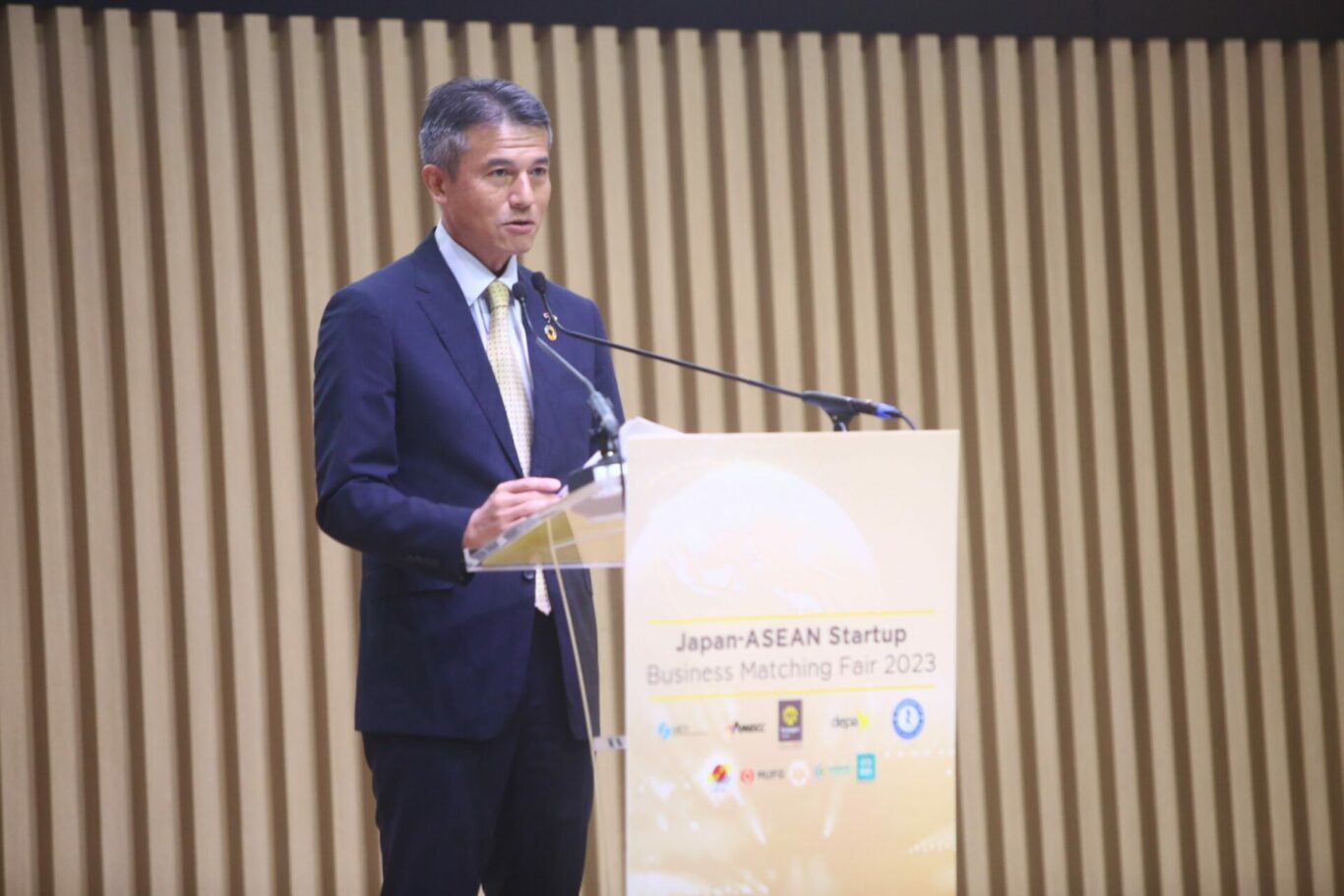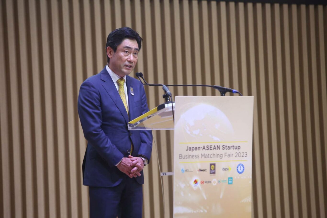 ในโอกาสนี้ ฯพณฯ นายโอบะ ยูอิจิ อุปทูต สถานเอกอัครราชทูตญี่ปุ่นประจำประเทศไทย ได้ให้เกียรติเป็นประธานในพิธีและกล่าวถึงความร่วมมือครั้งนี้ว่า การสนับสนุนธุรกิจสตาร์ทอัพถือเป็นหนึ่งเรื่องที่รัฐบาลญี่ปุ่นให้การสนับสนุน ซึ่งอยู่ภายใต้กลยุทธ์เรื่องการเปลี่ยนแปลงสู่ความยั่งยืนด้านสิ่งแวดล้อมของญี่ปุ่น (GX Strategy) และการส่งเสริมโมเดลเศรษฐกิจใหม่ BCG Model ของไทย และกุญแจสำคัญที่ช่วยให้งานครั้งนี้บรรลุผลสำเร็จคือ ความร่วมมือเพื่อสร้างสรรค์ประโยชน์ร่วมกันอย่างแท้จริง (Co-creation) ซึ่งงานครั้งนี้รัฐบาลญี่ปุ่นพร้อมให้การสนับสนุนร่วมกับรัฐบาลไทย และภาคเอกชนทั้งในประเทศไทยและอาเซียน เพื่อสร้างโอกาสทางธุรกิจและร่วมส่งเสริมเศรษฐกิจระหว่างอาเซียนและญี่ปุ่น พร้อมเน้นย้ำถึงความสัมพันธ์ที่ดีต่อกันระหว่างอาเซียน-ญี่ปุ่น ในวาระครบรอบ 50 ปี และจะสานต่อการทำงานร่วมกับภาครัฐและภาคเอกชนไทยเพื่อต่อยอดความสัมพันธ์ให้ยั่งยืนต่อไป