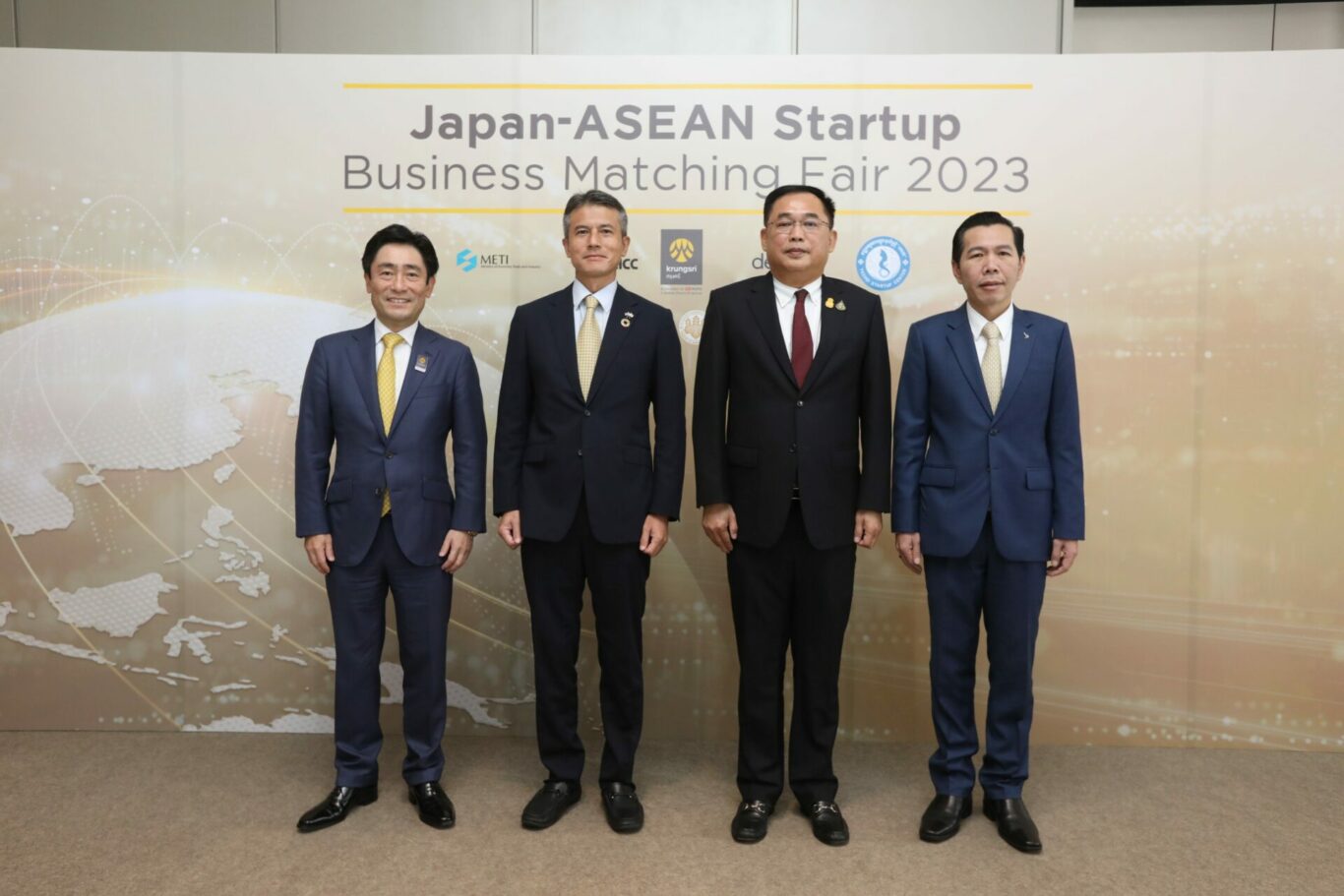 นายเคนอิจิ ยามาโตะ (ซ้ายสุด) กรรมการผู้จัดการใหญ่และประธานเจ้าหน้าที่บริหาร ธนาคารกรุงศรีอยุธยา จำกัด (มหาชน) ร่วมกับ ฯพณฯ นายโอบะ ยูอิจิ (2 จากซ้าย) อุปทูต สถานเอกอัครราชทูตญี่ปุ่นประจำประเทศไทย, นายอนุชา นาคาศัย (2 จากขวา) รัฐมนตรีประจำสำนักนายกรัฐมนตรี และ ผศ.ดร.ณัฐพล นิมมานพัชรินทร์ (ขวาสุด) ผู้อำนวยการใหญ่ สำนักงานส่งเสริมเศรษฐกิจดิจิทัล (depa) จัดงาน Japan-ASEAN Startup Business Matching Fair 2023 งานจับคู่เจรจาธุรกิจสตาร์ทอัพครั้งยิ่งใหญ่ที่สุดในอาเซียน ในโอกาสฉลองครบรอบ 50 ปี ความสัมพันธ์ระหว่างอาเซียน-ญี่ปุ่น พร้อมไปกับส่งเสริมเศรษฐกิจการค้าระหว่างอาเซียนและญี่ปุ่น ด้วยการเปิดโอกาสให้สตาร์ทอัพดาวรุ่งมากกว่า 60 ราย จากเก้าประเทศ ได้แสดงศักยภาพต่อนักลงทุนมากกว่า 160 บริษัทชั้นนำจากหกประเทศ เพื่อสามารถเข้าถึงแหล่งเงินทุน และต่อยอดการเติบโตให้ไปได้ไกลกว่าในระดับอาเซียน