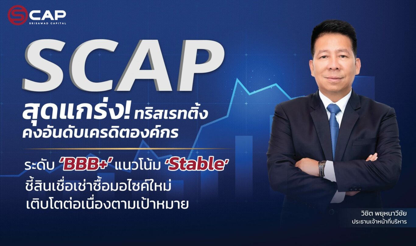 SCAP สุดแกร่ง! ทริสเรทติ้ง คงอันดับเครดิตองค์กร ระดับ ‘BBB+’ แนวโน้ม ‘Stable’ ชี้สินเชื่อเช่าซื้อมอไซค์ใหม่ขยายตัวได้ดีเป็นไปตามเป้าหมาย