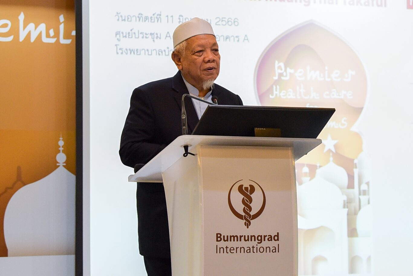 ขณะที่ อาจารย์อรุณ บุญชม ประธานคณะกรรมการเมืองไทยชารีอะห์และประธานคณะผู้ทรงคุณวุฒิจุฬาราชมนตรี ได้ให้เกียรติกล่าวต้อนรับผู้เข้าร่วมงาน พร้อมกล่าวถึงรายละเอียดและความสำคัญด้านธุรกรรม ตะกาฟุล ภายในงานมีการบรรยายในหัวข้อ “Elite Health สำหรับพี่น้องมุสลิม” โดย นพ.วุฒิวงศ์ สมบุญเรืองศรี รองกรรมการผู้จัดการ บริษัท เมืองไทยประกันชีวิต จำกัด (มหาชน) พร้อมการเสวนา “แนะนำนวัตกรรมการรักษาโรคหัวใจ มะเร็ง และการรักษาแบบองค์รวม มาตรฐานบำรุงราษฎร์” โดย นพ.สุรสิทธิ์ อิสสระชัย แพทย์ผู้ชำนาญการอายุรศาสตร์ โลหิตวิทยาและมะเร็งวิทยา รศ.นพ.สุวัจชัย พรรัตนรังสี แพทย์ผู้ชำนาญการอายุรศาสตร์โรคหัวใจ และ นพ.กษิดิษ ศรีสง่า แพทย์ผู้ชำนาญการศัลยศาสตร์ทั่วไป พร้อมด้วย รศ.ดร.วินัย ดะห์ลัน คณะกรรมการเมืองไทยชารีอะห์ ร่วมในงาน โดยงานจัดขึ้น ณ โรงพยาบาลบำรุงราษฎร์
